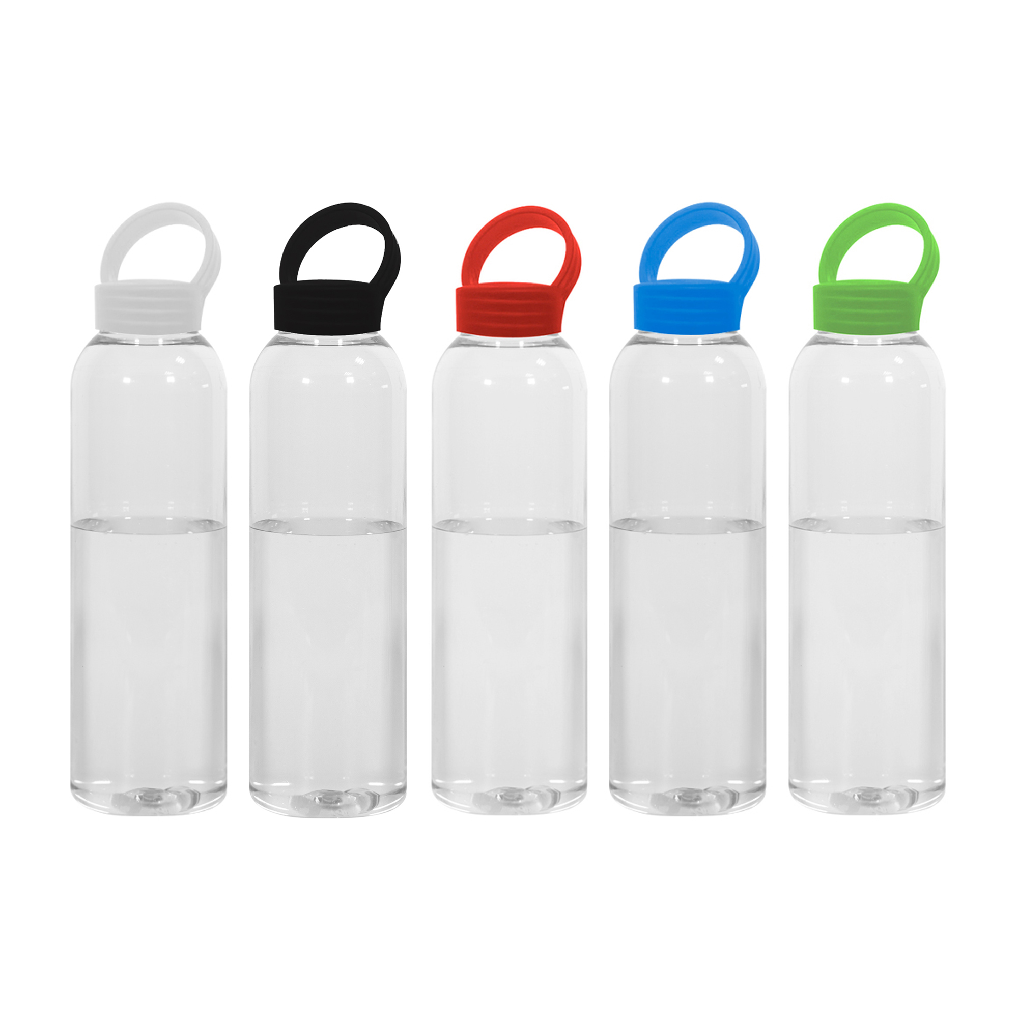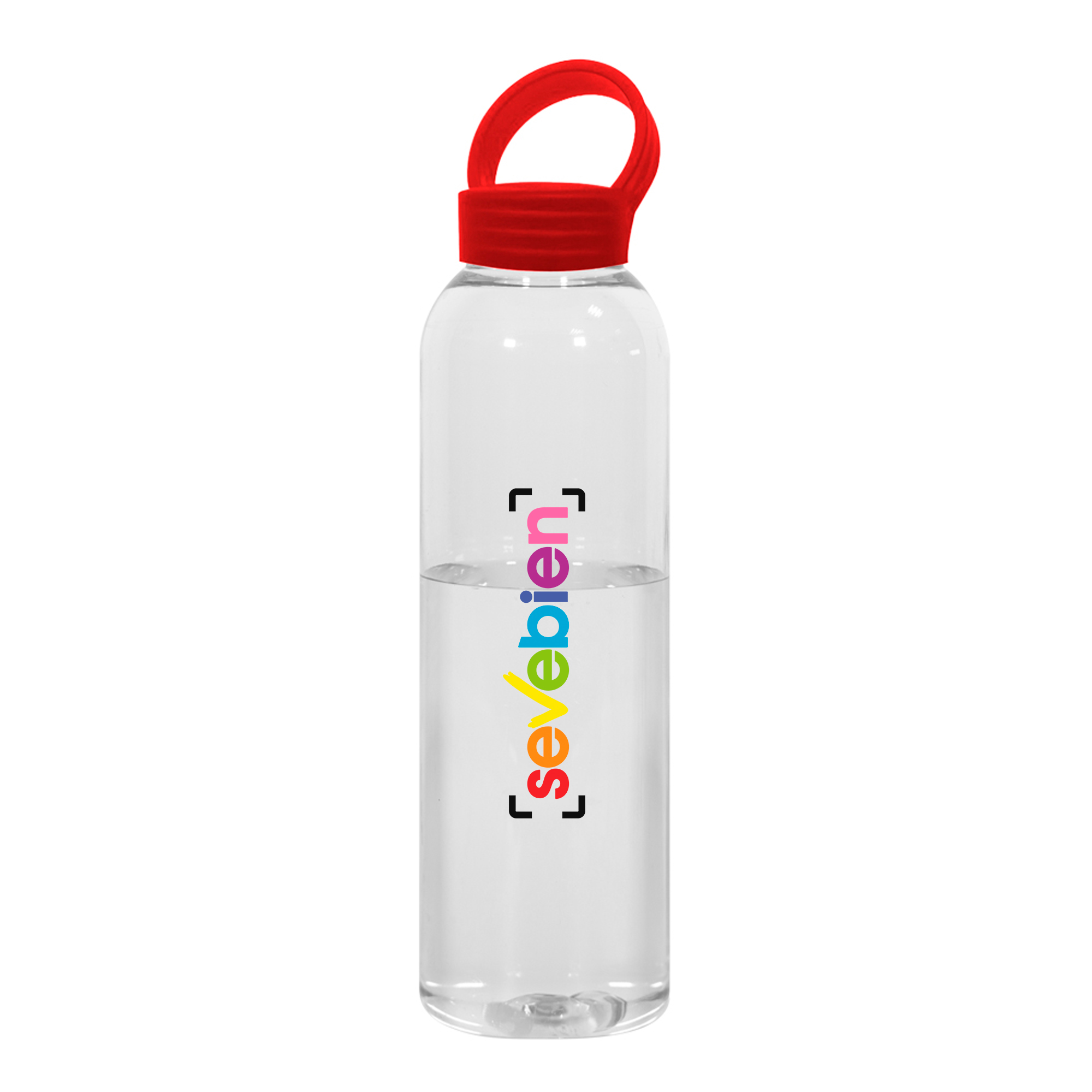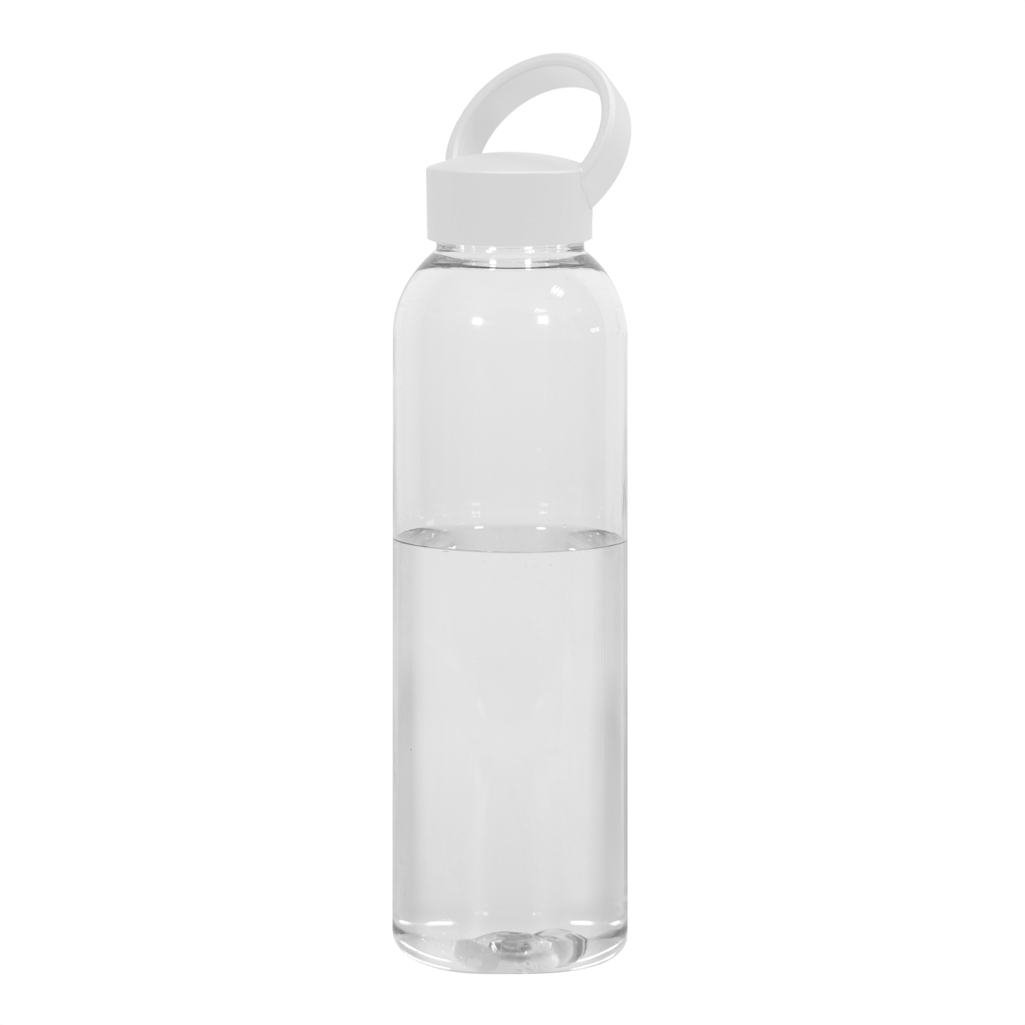 Botella de plástico transparente con tapa a rosca plástica.