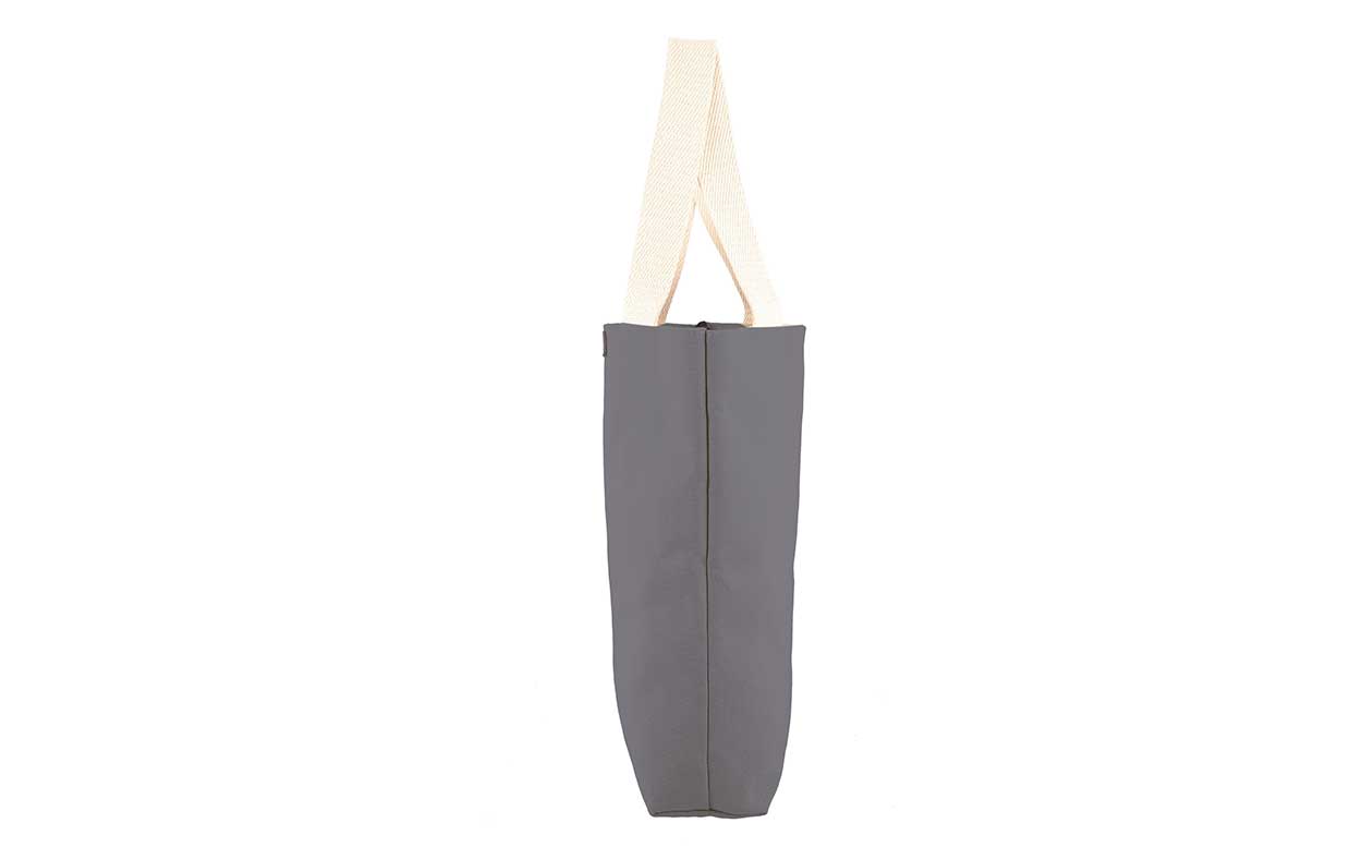Bolsa Matera realizada en Loneta 100% algodón de 510 gr con manijas de cinta de algodón de 30 mm color crudo. En su interior contiene forro rayado de Gros y costuras internas ribeteadas. Capacidad 11,4 lts
