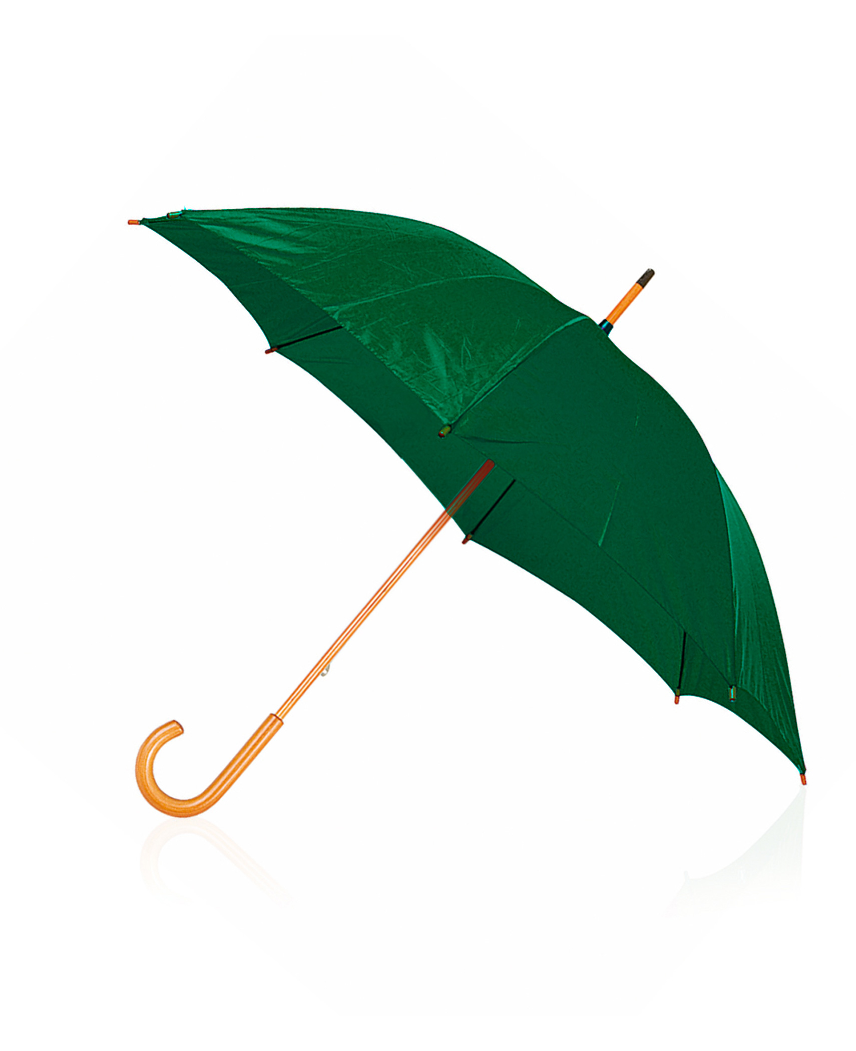 Bastón en madera con empuñadura curva.Tela poliester 8 gajos cierre velcro.