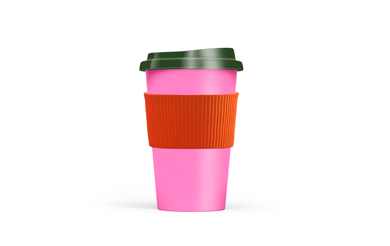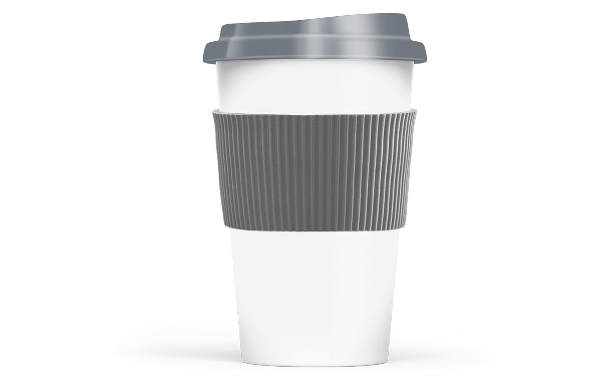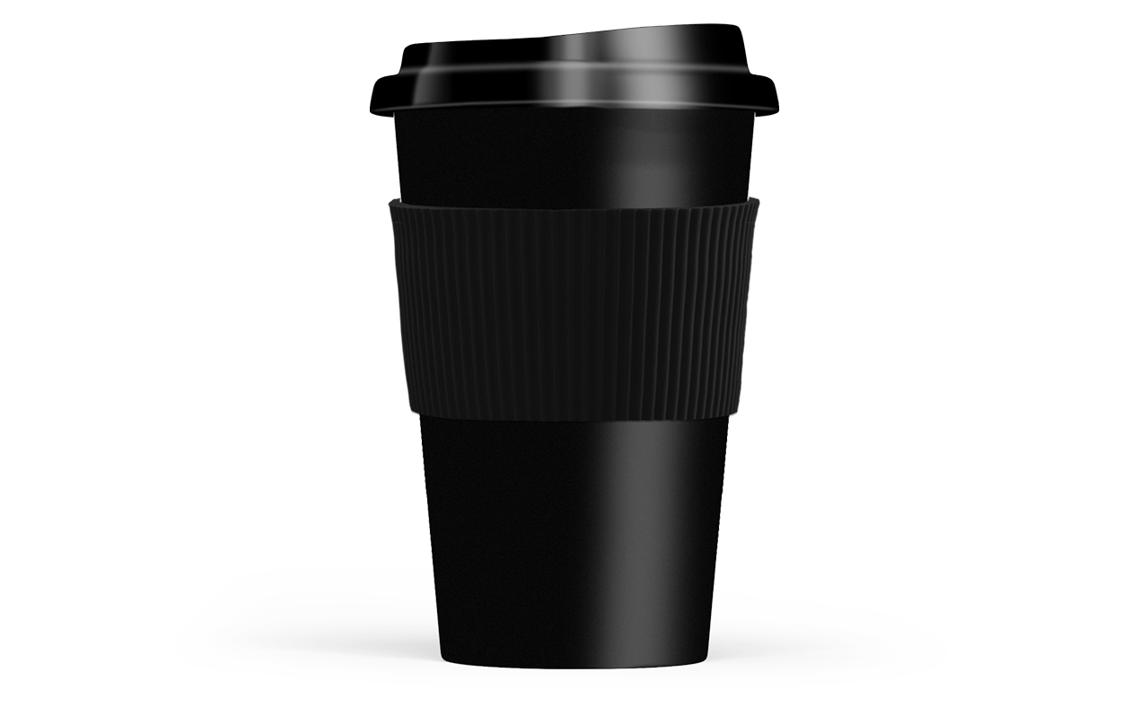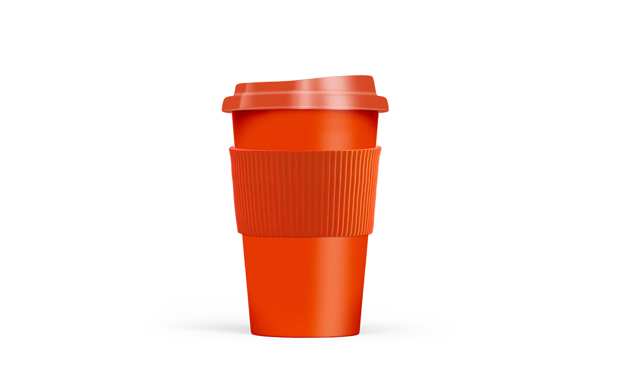 Vaso reutilizable fabricado en polipropileno con tapa de plástico duro y grip siliconado.