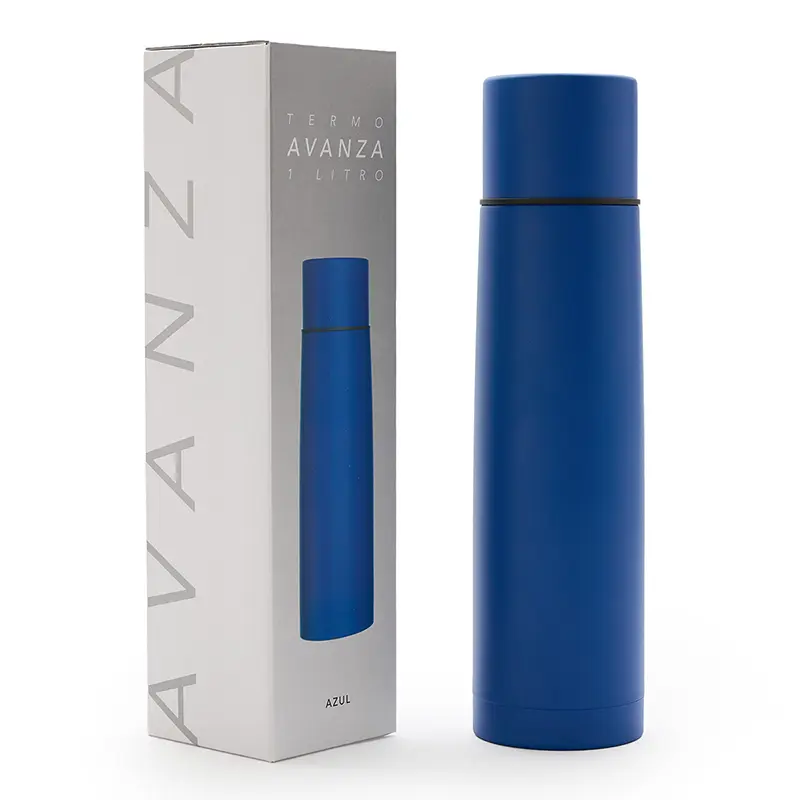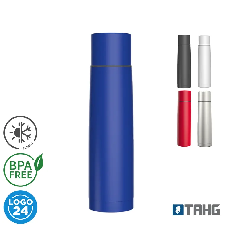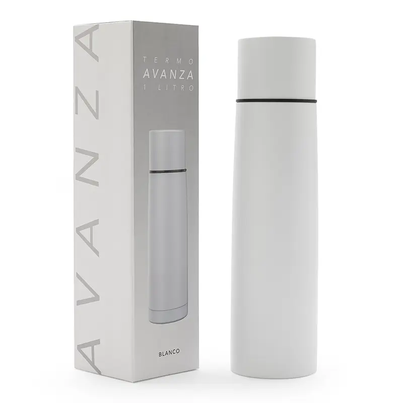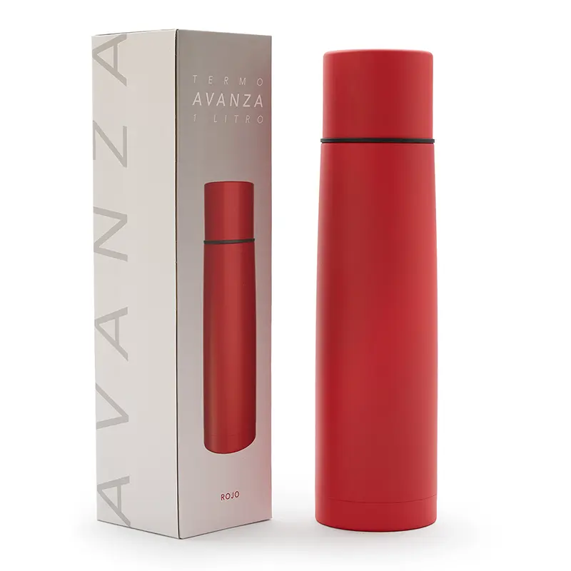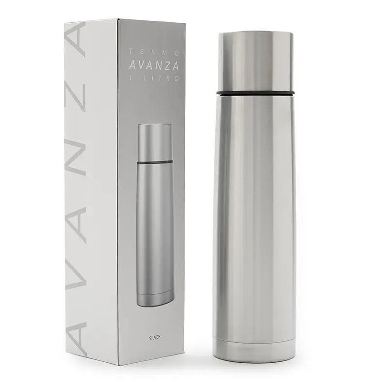 Termo realizado en acero inoxidable 304 con esmalte especial protector. Producto aprobado por el I.N.A.L. para el contacto con alimentos. Colores disponibles: Gris, Blanco, Negro, Rojo, Azul. Medidas: 32 cm x diámetro 8,3 cm. Capacidad: 1 Lt. Producto libre de BPA.