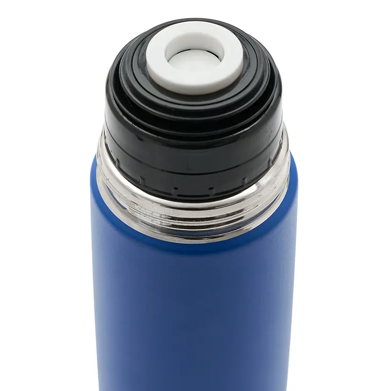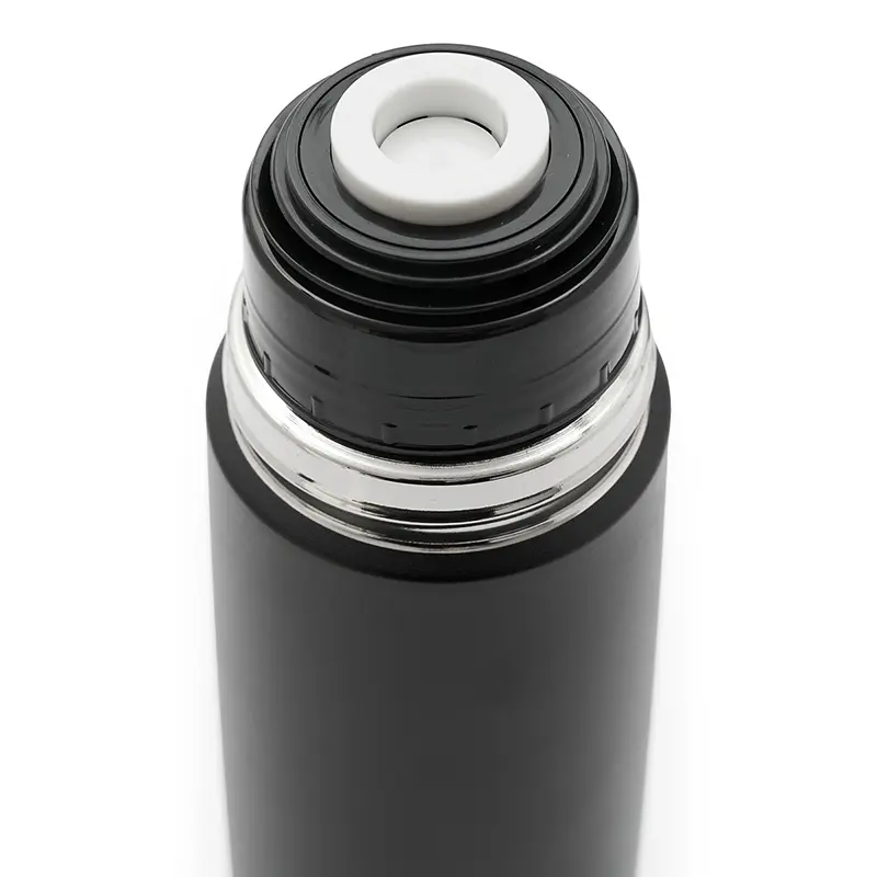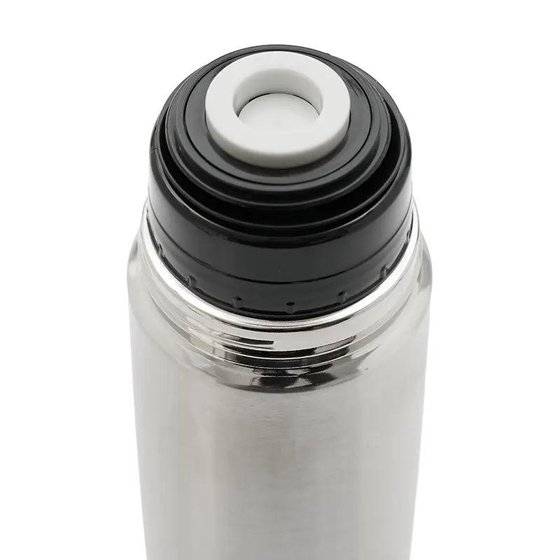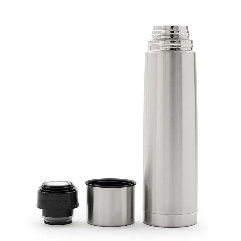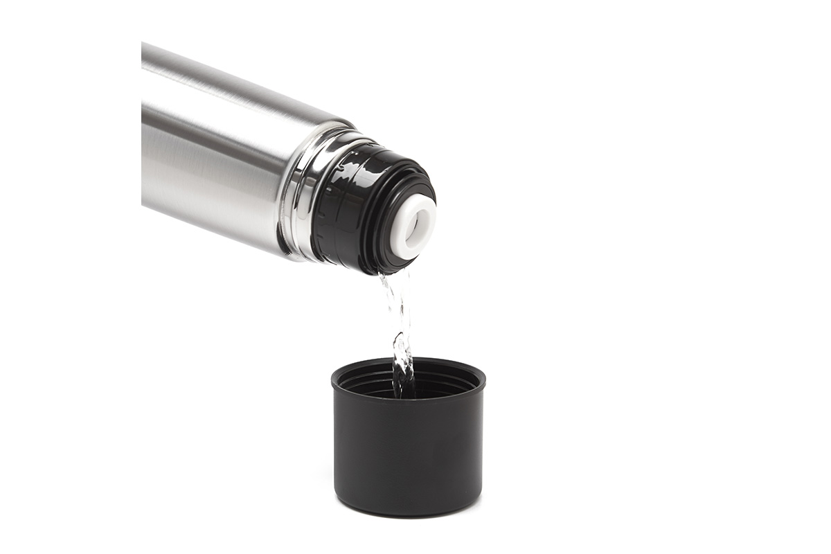 Termo realizado en acero inoxidable 304 con esmalte especial protector. Producto aprobado por el I.N.A.L. para el contacto con alimentos. Colores disponibles: Gris, Blanco, Negro, Rojo, Azul. Medidas: 32 cm x diámetro 8,3 cm. Capacidad: 1 Lt. Producto libre de BPA.