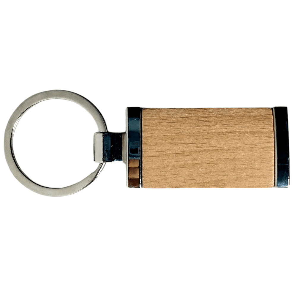 Llavero Bamboo Rectangular. Frente de bamboo dorso de metal