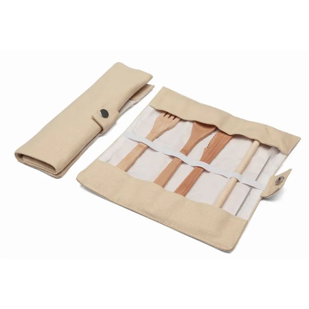 Incluye: Cuchara, tenedor, cuchillo, sorbete y cepillo limpia sorbete.