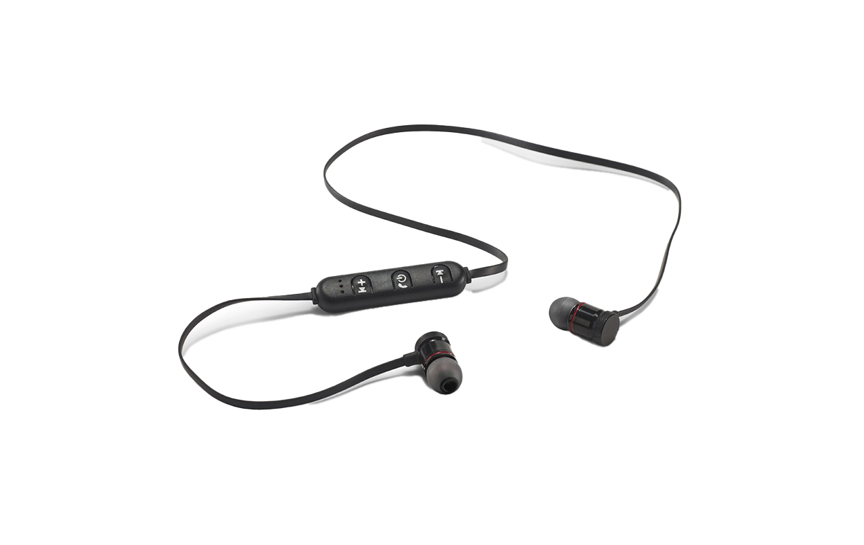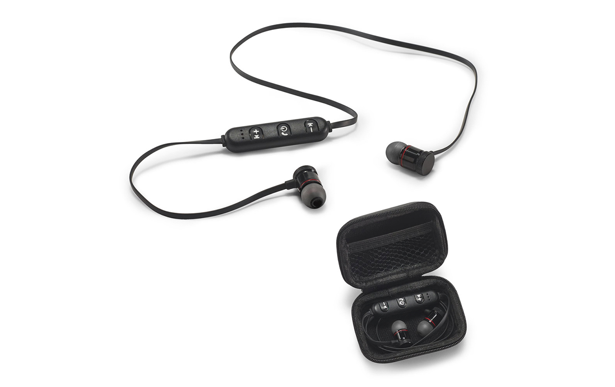Auriculares inalámbricos con conexión Bluetooth 4.1. Gracias a sus botones multifunción te permite responder llamadas, controlar el volumen y conectarse a la lista de reproducción del dispositivo móvil. La batería tiene una capacidad de 50 mAh. Incluye cable USB/micro USB para su carga. Los auriculares se suministran en estuche de goma EVA