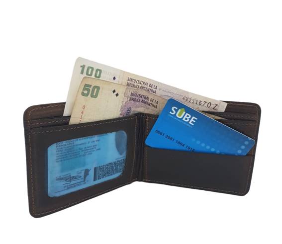 Billetera de cuero linea “CACH” con caja, modelo con ventana y divisor de billetes