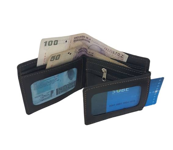 Billetera de cuero completa, modelo con ventana, divisor de billetes y volante adicional para agregar mas tarjetas o documentos