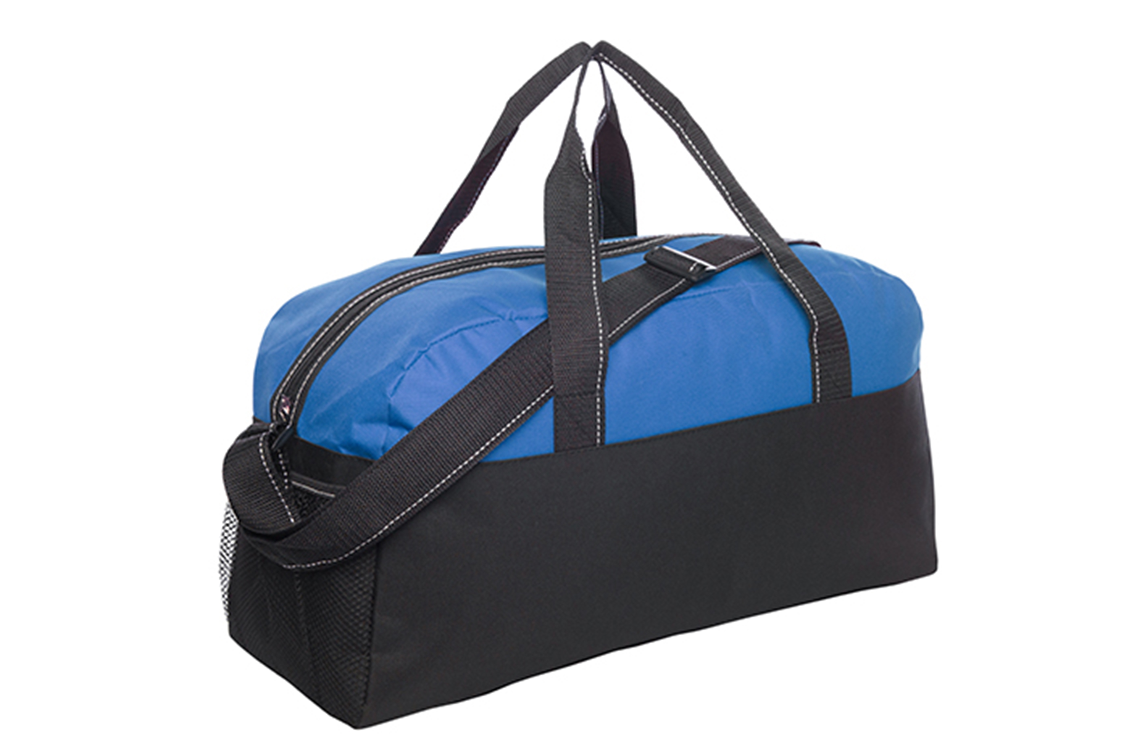 51 x 18,5 x 25 cm. Capacidad 23 litros aprox. Poliéster 300D. Bolso con bolsillos de redes en los laterales. Dos manijas, correa ajustable y cierre principal con vivos en color blanco.
