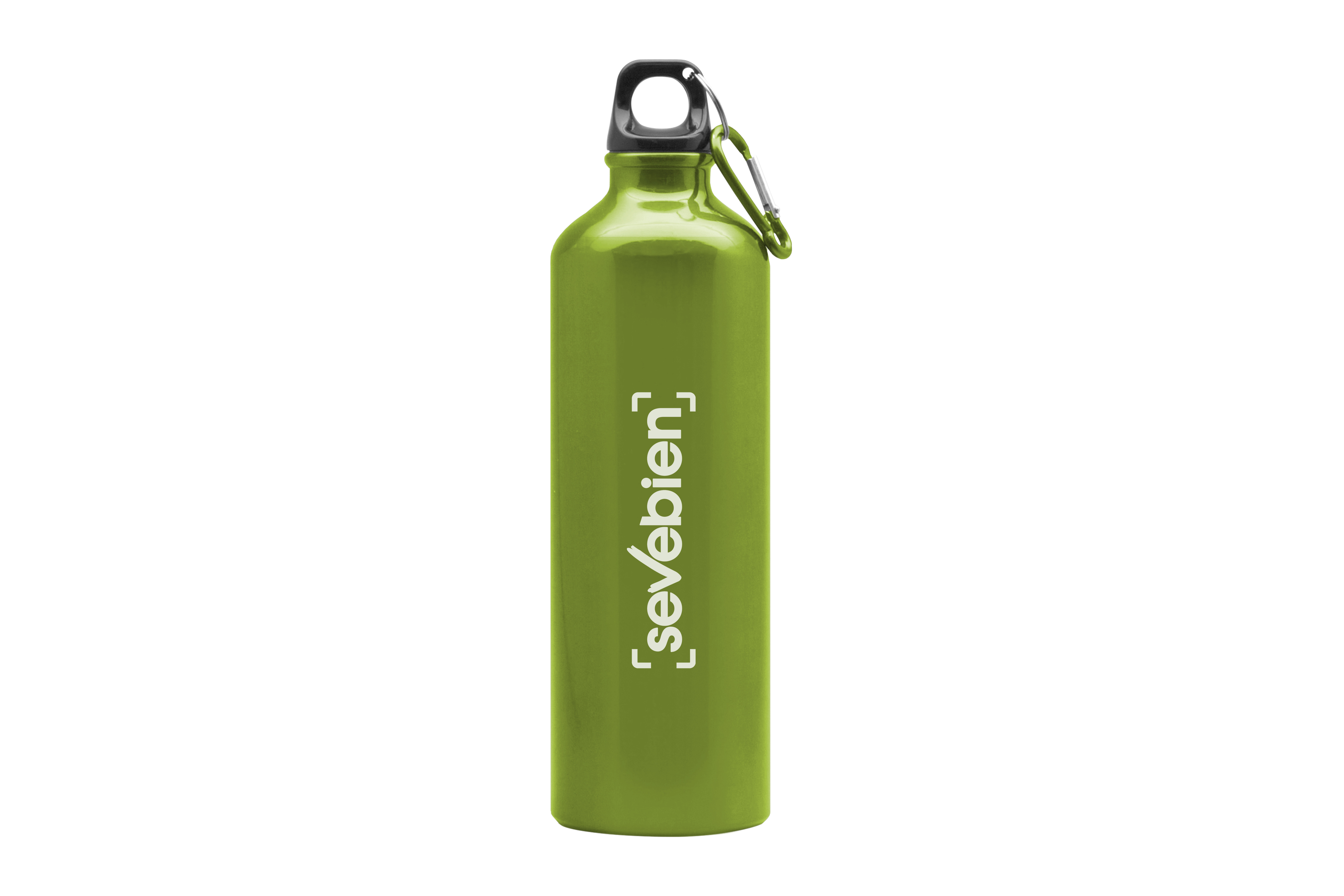Ø 7,2 x 25,5 cm. Capacidad 750 ml. Aluminio. Botella de aluminio. Tapa a rosca plástica y gancho metálico.