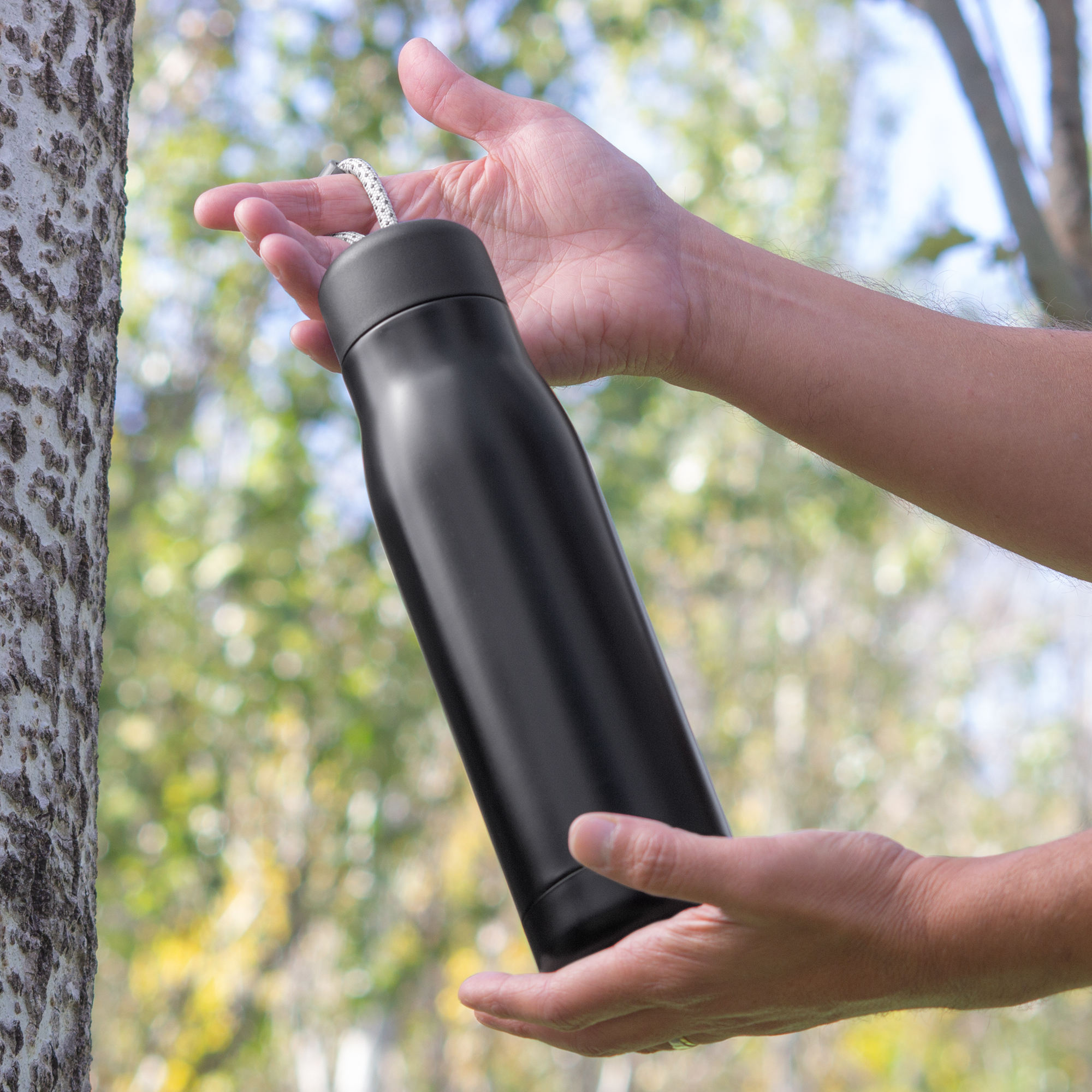 Lleva tus bebidas favoritas con la temperatura que te gusta.Botella doble pared, sellada al vacío. Interior de acero 304 y exterior de acero 201. Tapa plástica de polipropileno y anillo de silicona. Posee además tira de color gris de 12 cm de largo. Ideal para llevarla a todos lados. Mantiene hasta 12 hs la temperatura de las bebidas calientes y 24 hs de las bebidas frías. Medidas: Ø 7cm x 25.5 cm.