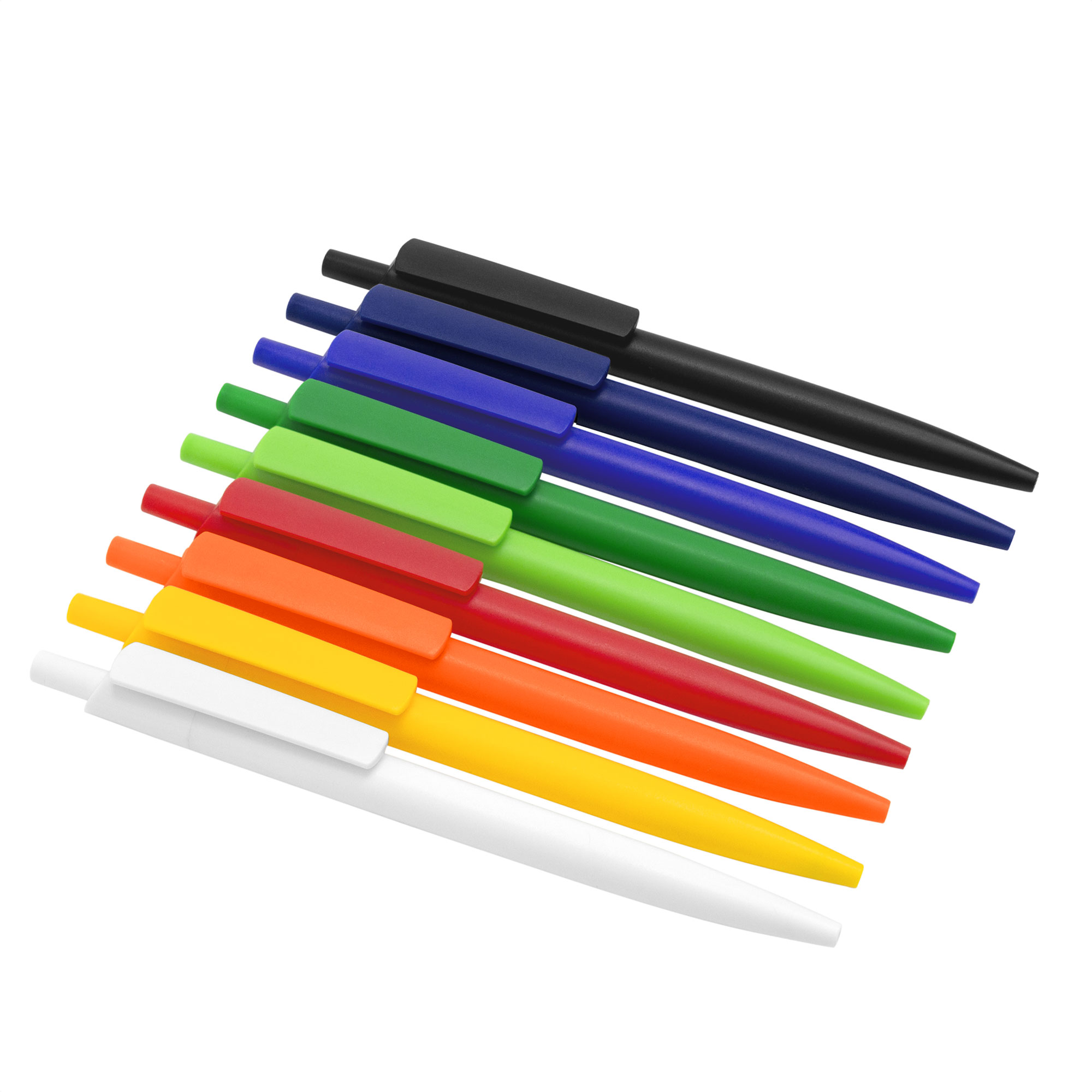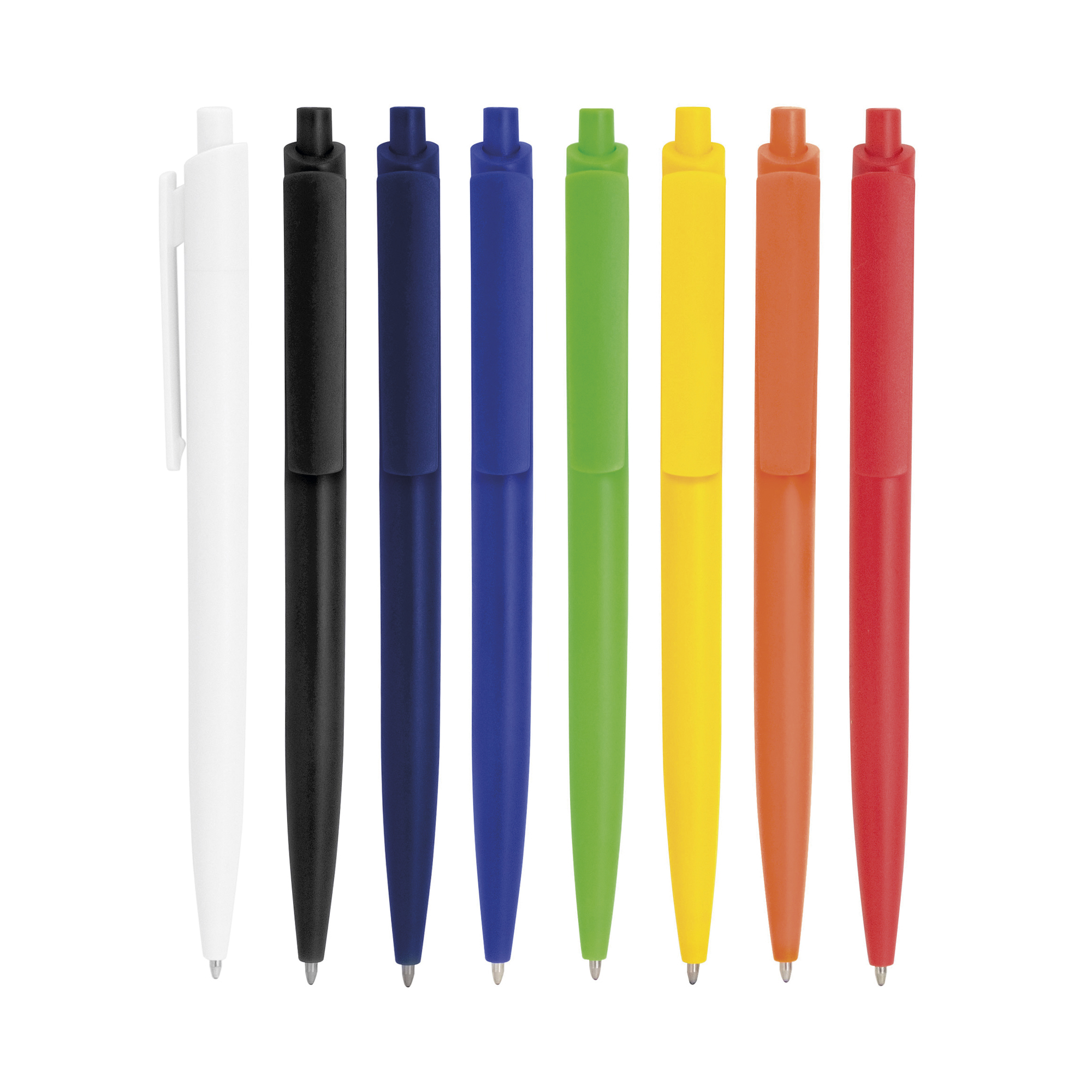 Escribe con estilo y personalidad.Bolígrafo retráctil. Cuerpo de diferentes colores. Acabado mate. Pulsador, clip y puntera del mismo color del cuerpo. Amplia área de impresión.Medidas: 1 x 14 cm.