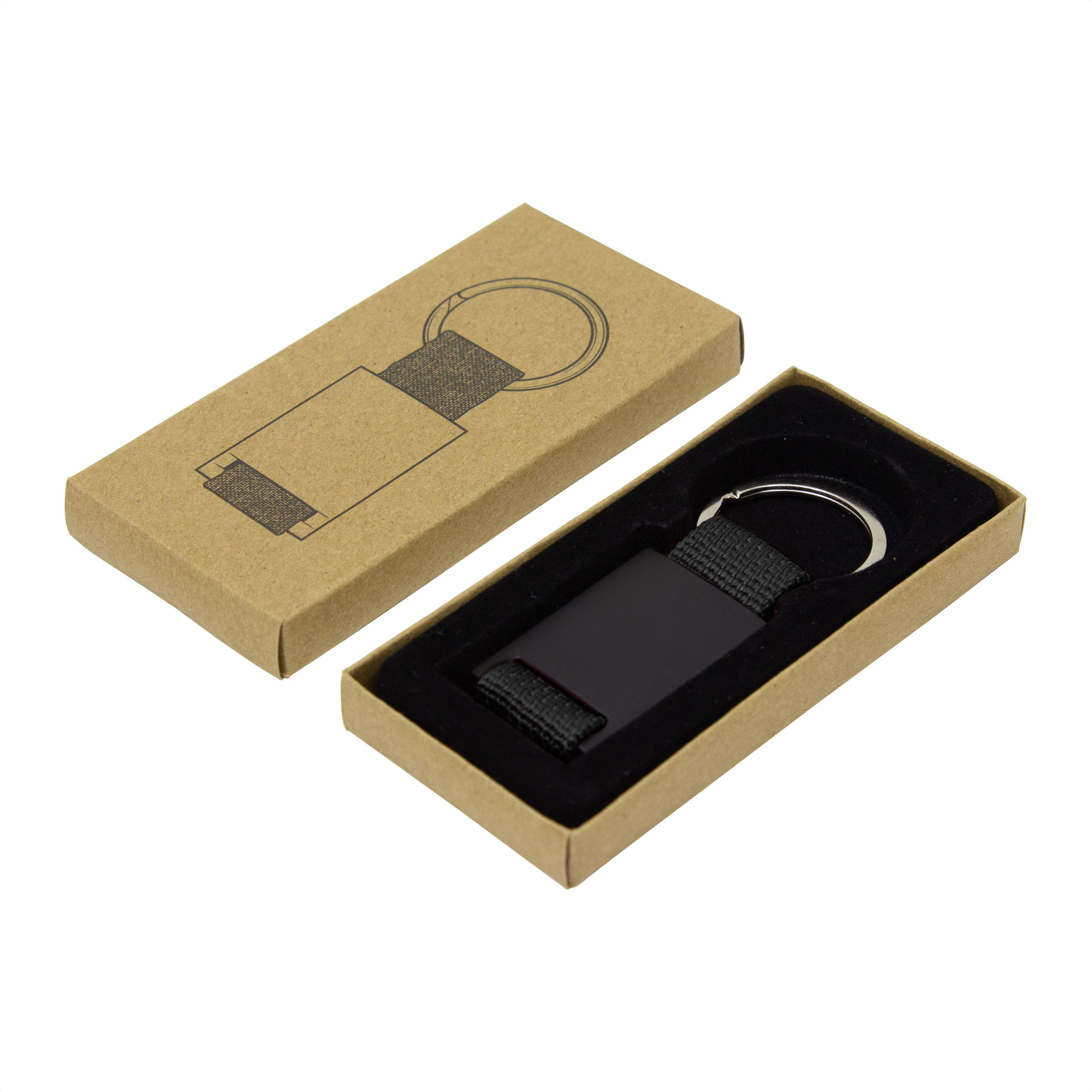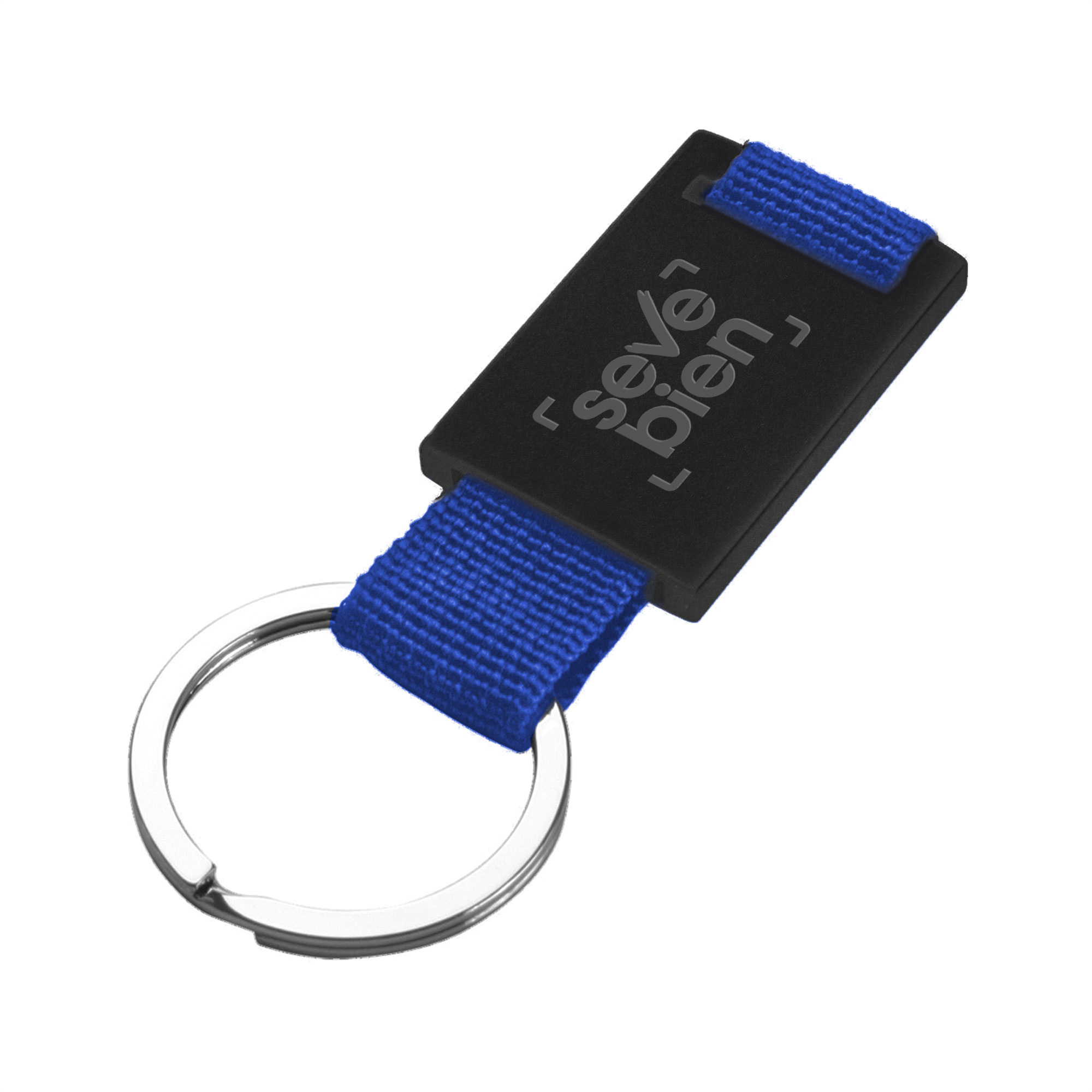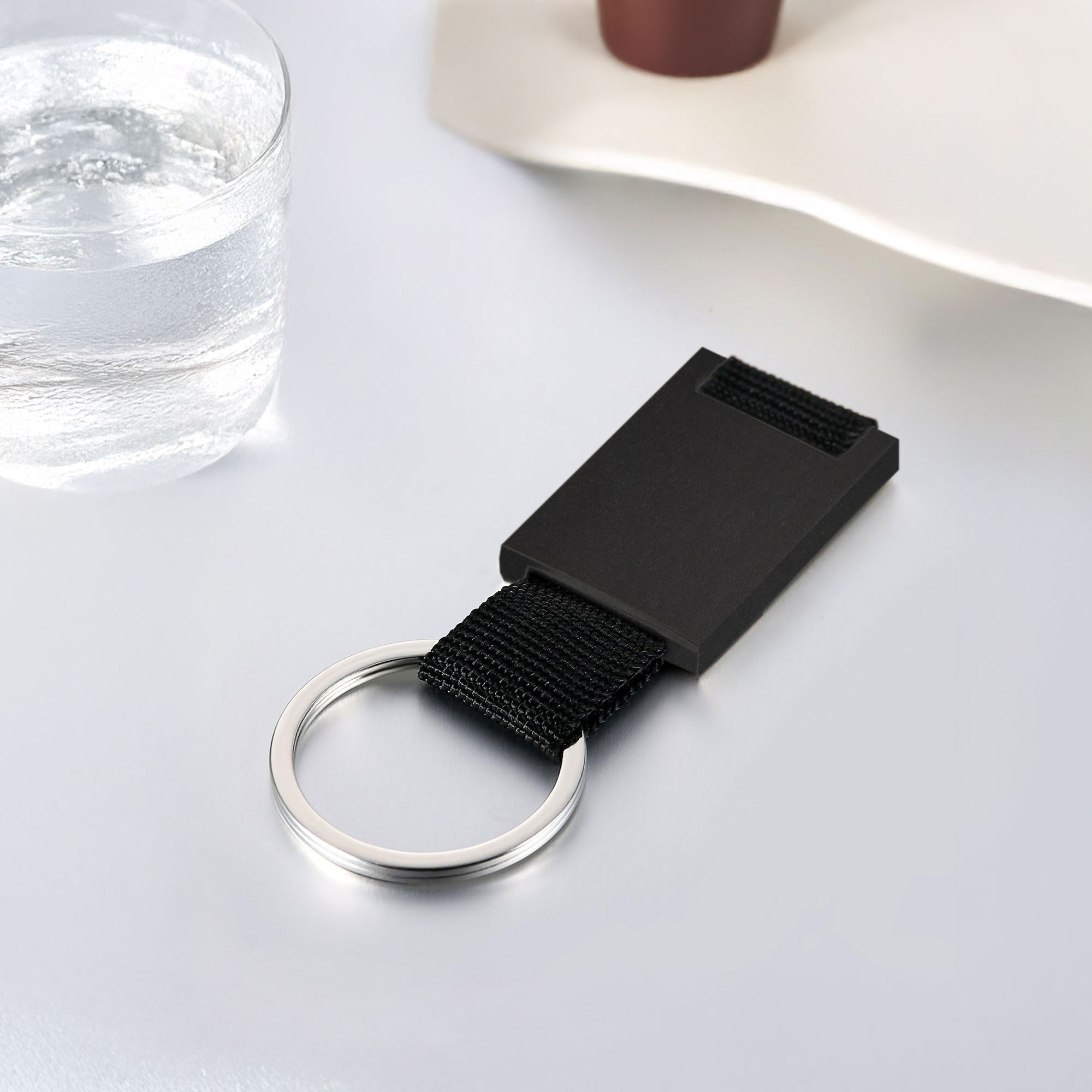 Modernidad en tus manos.Llavero. Estructura metálica con aleación de zinc, terminación en negro mate. Correa de Polipropileno.Medidas: 6,2 x 2,7 x 0,4 cm.