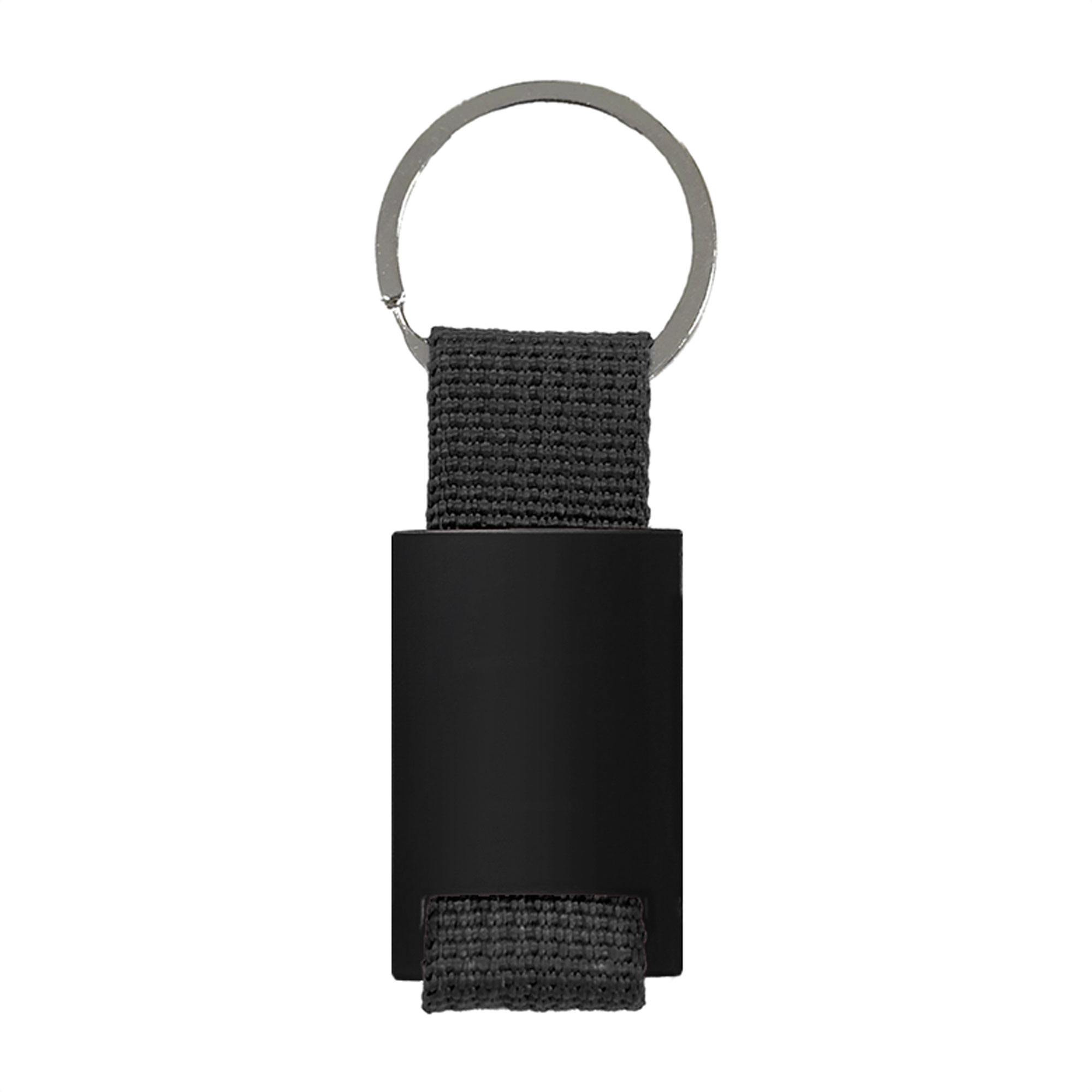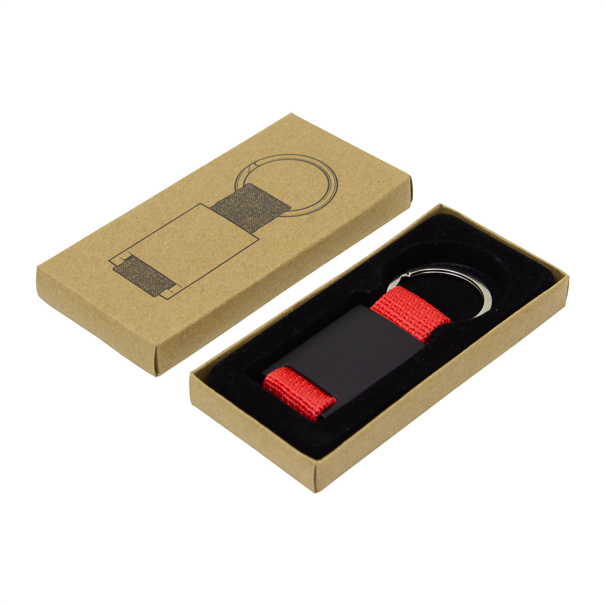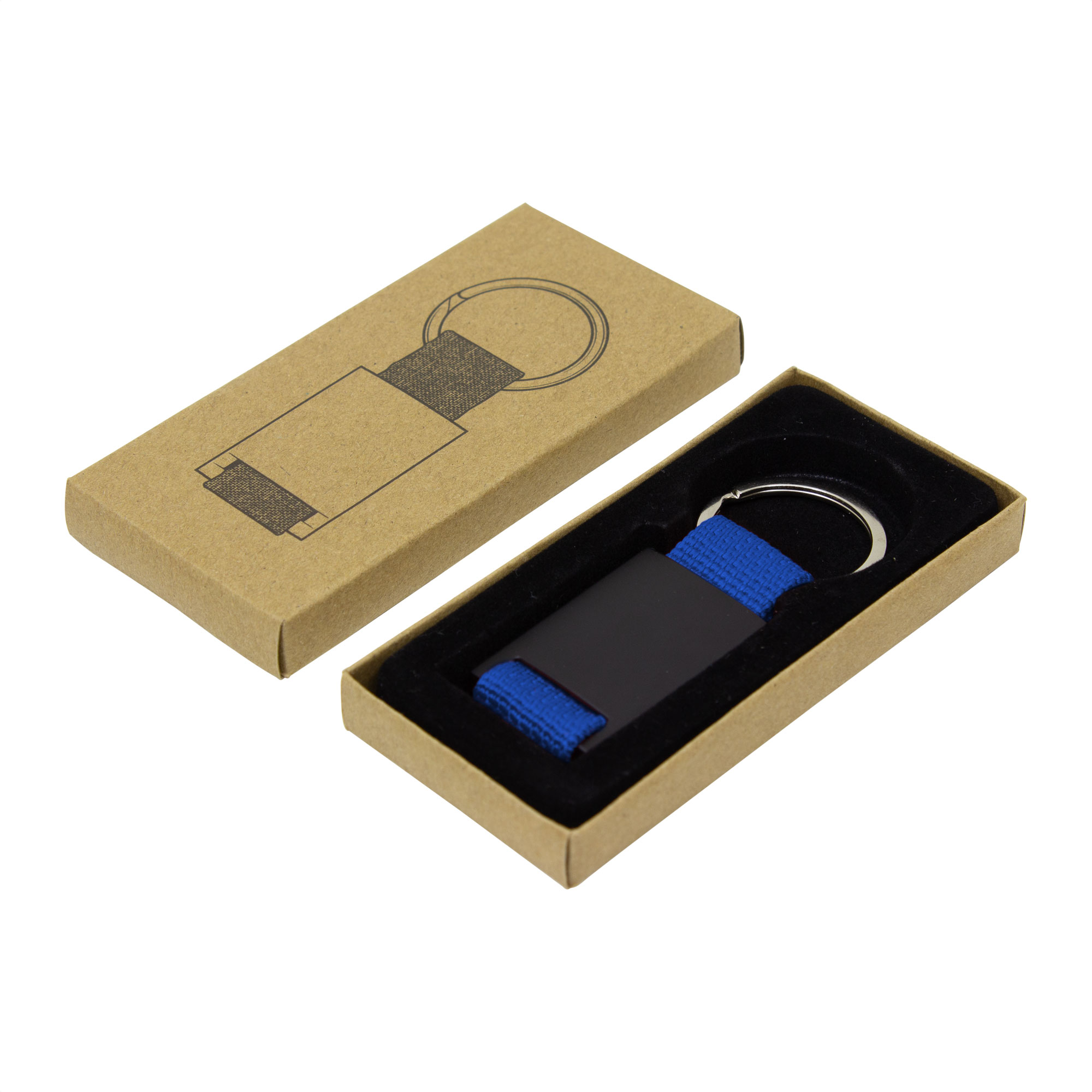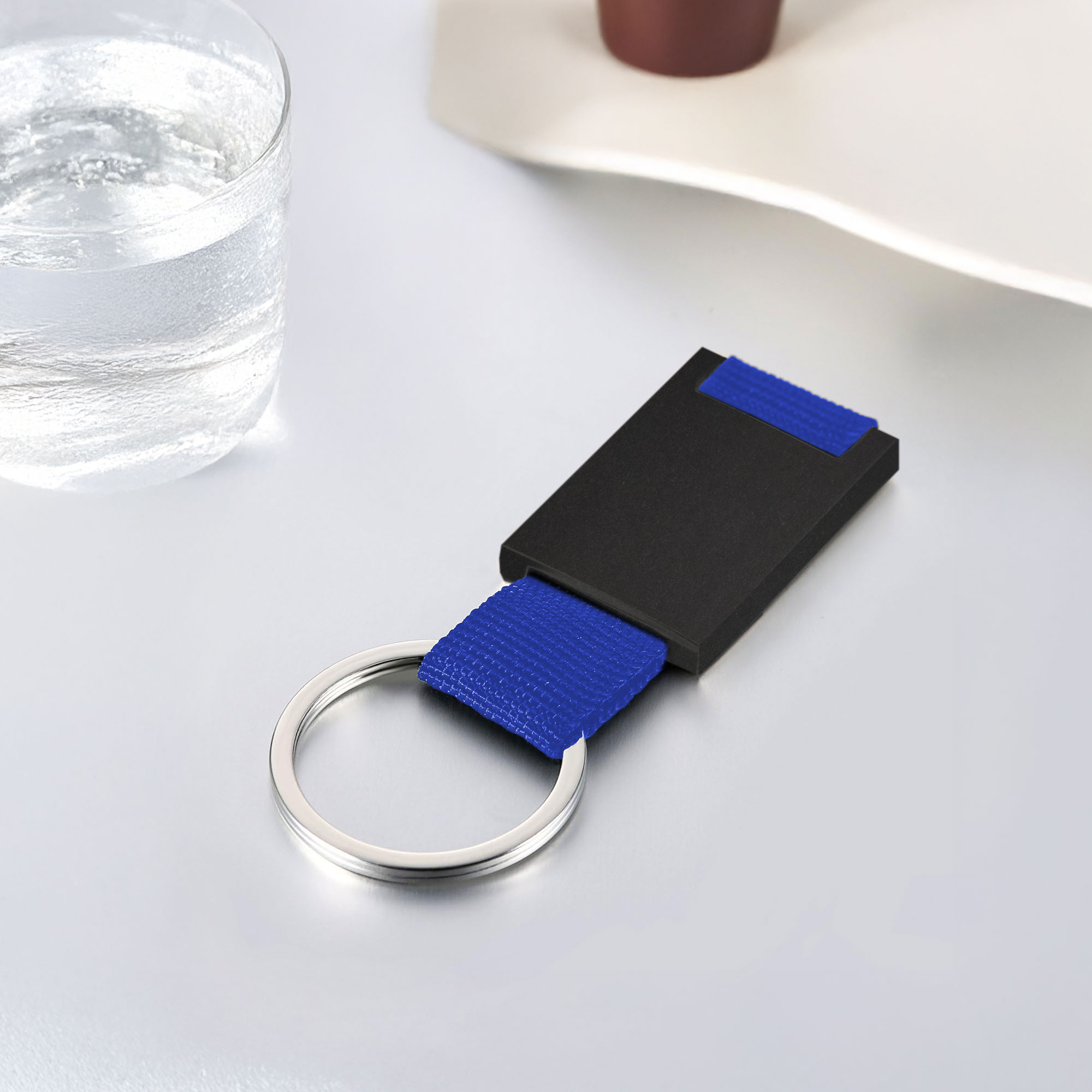 Modernidad en tus manos.Llavero. Estructura metálica con aleación de zinc, terminación en negro mate. Correa de Polipropileno.Medidas: 6,2 x 2,7 x 0,4 cm.