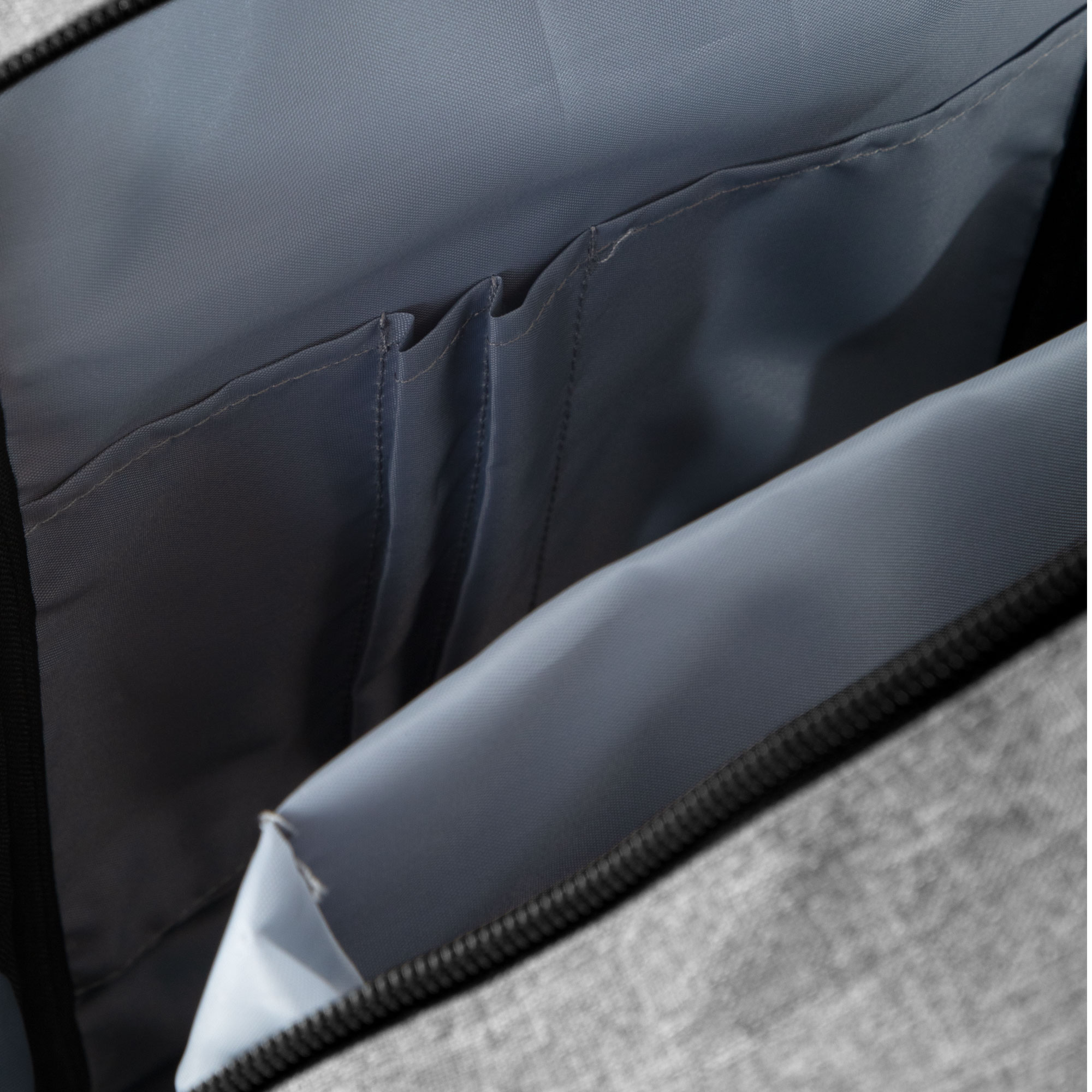 Combina estilo y funcionalidad.Mochila urbana portanotebook de hasta 16 pulgadas. Compartimento principal con cierre y bolsillo portanotebook y tablet de hasta 11 pulgadas, además bolsillos organizadores de accesorios. Compartimento frontal con 2 bolsillos delanteros. 2 bolsillos laterales, mitad de tela y mitad de malla elástica. Asa color negro. Interior forrado el poliéster gris claro. Correas ajustables y espalda acolchadas. Tira para sujetar la mochila en la manija extensible de un equipaje de mano. Tiradores de cierre metálicos. Medidas: 30 x 45 x 14 cm.