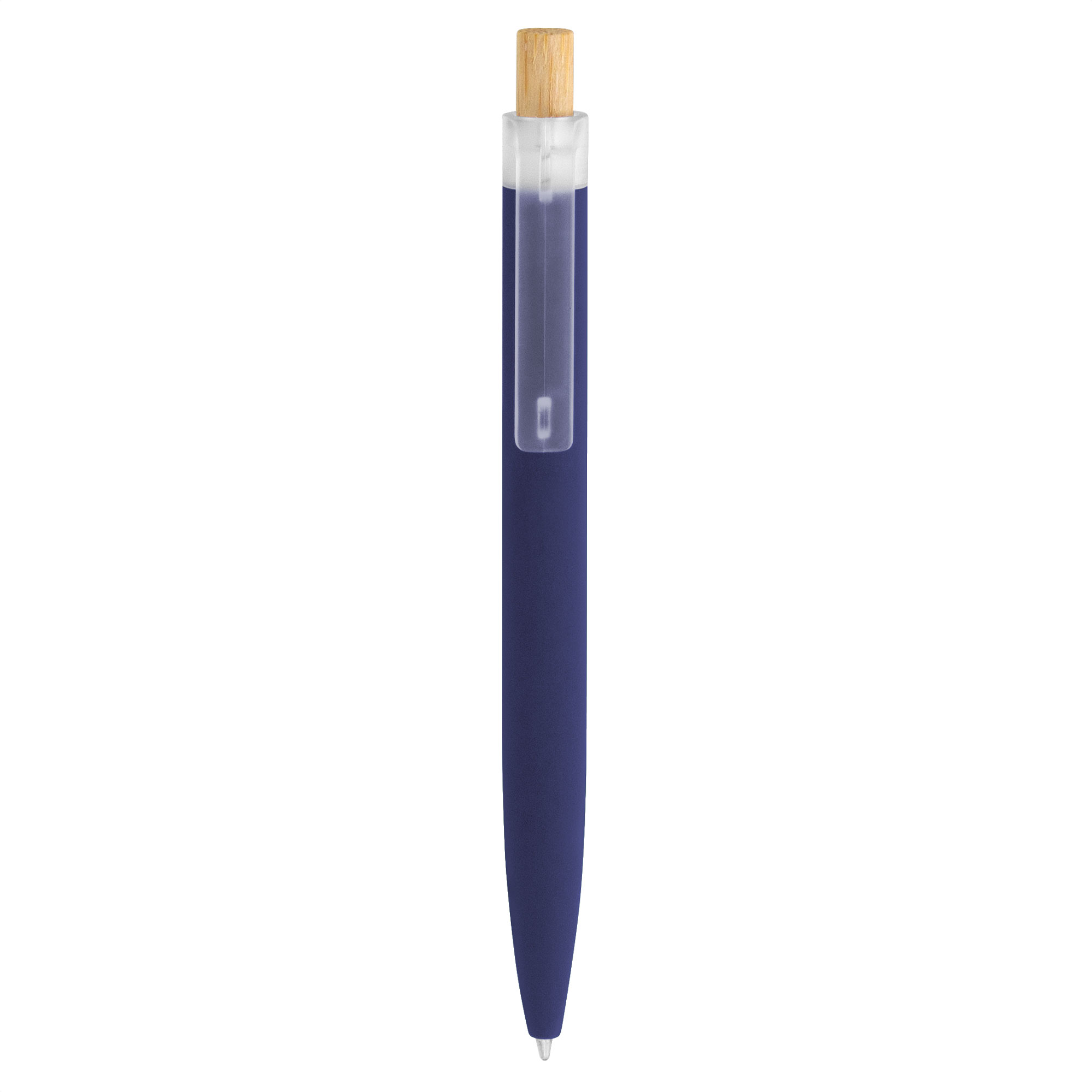 Fusiona lo moderno, elegante y ecológico.Bolígrafo retráctil. Cuerpo de aluminio en diferentes colores, acabado mate engomado, muy suave al tacto. Botón pulsador de bambú. Clip plástico transparente con terminación frosty. Medidas: 1,6 x 13,4 cm.