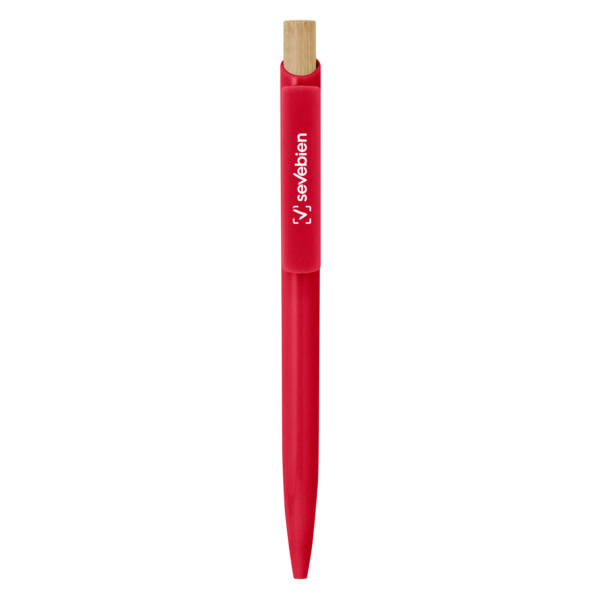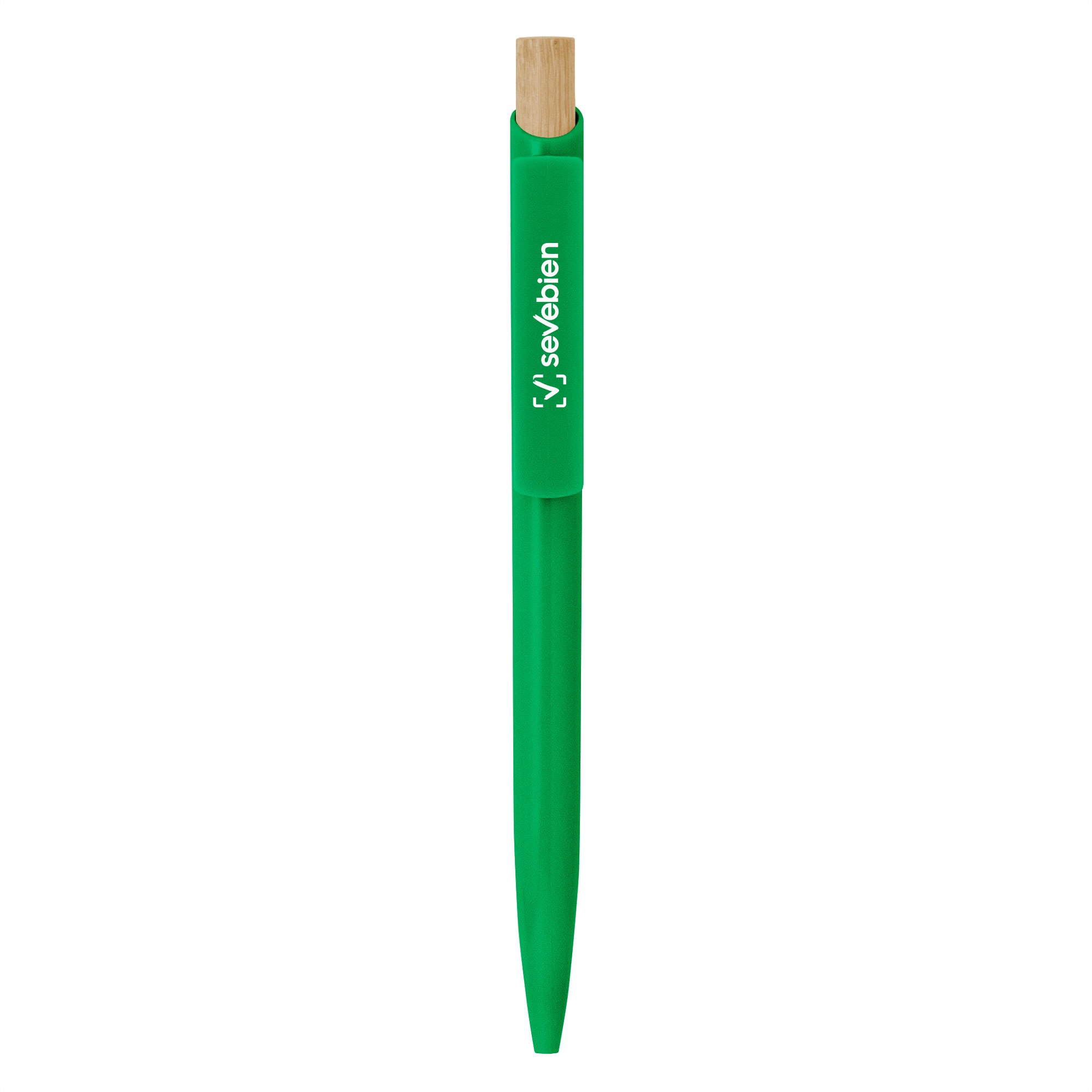 Combina estilo y conciencia ecológica.Bolígrafo retráctil. Cuerpo de diferentes colores. Pulsador de bambú. Clip del mismo color del cuerpo.