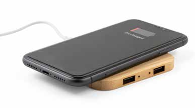 Cargador inalámbrico. Cargador inalámbrico Bamboo con función hub.