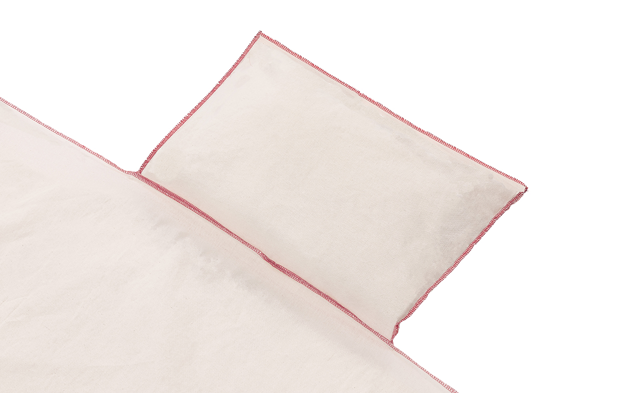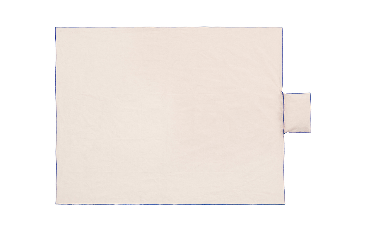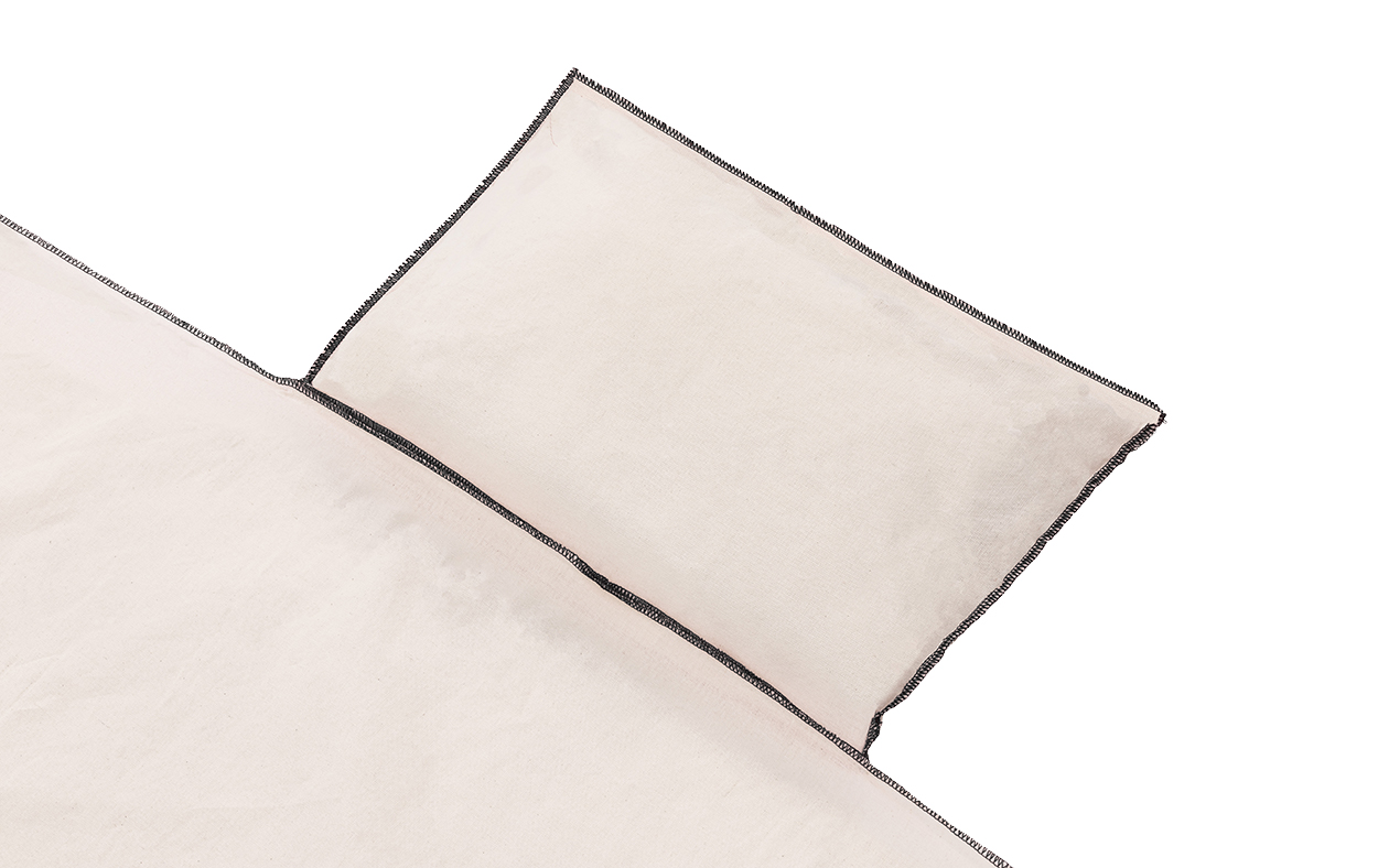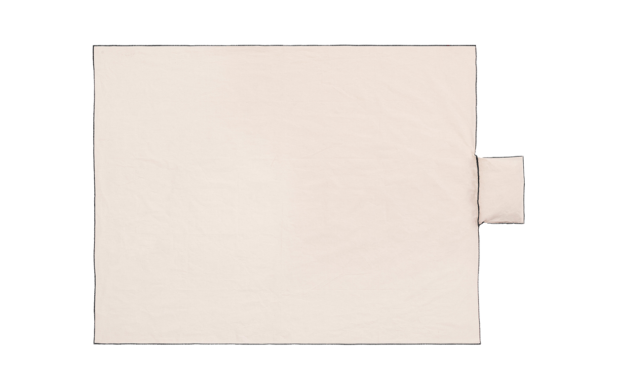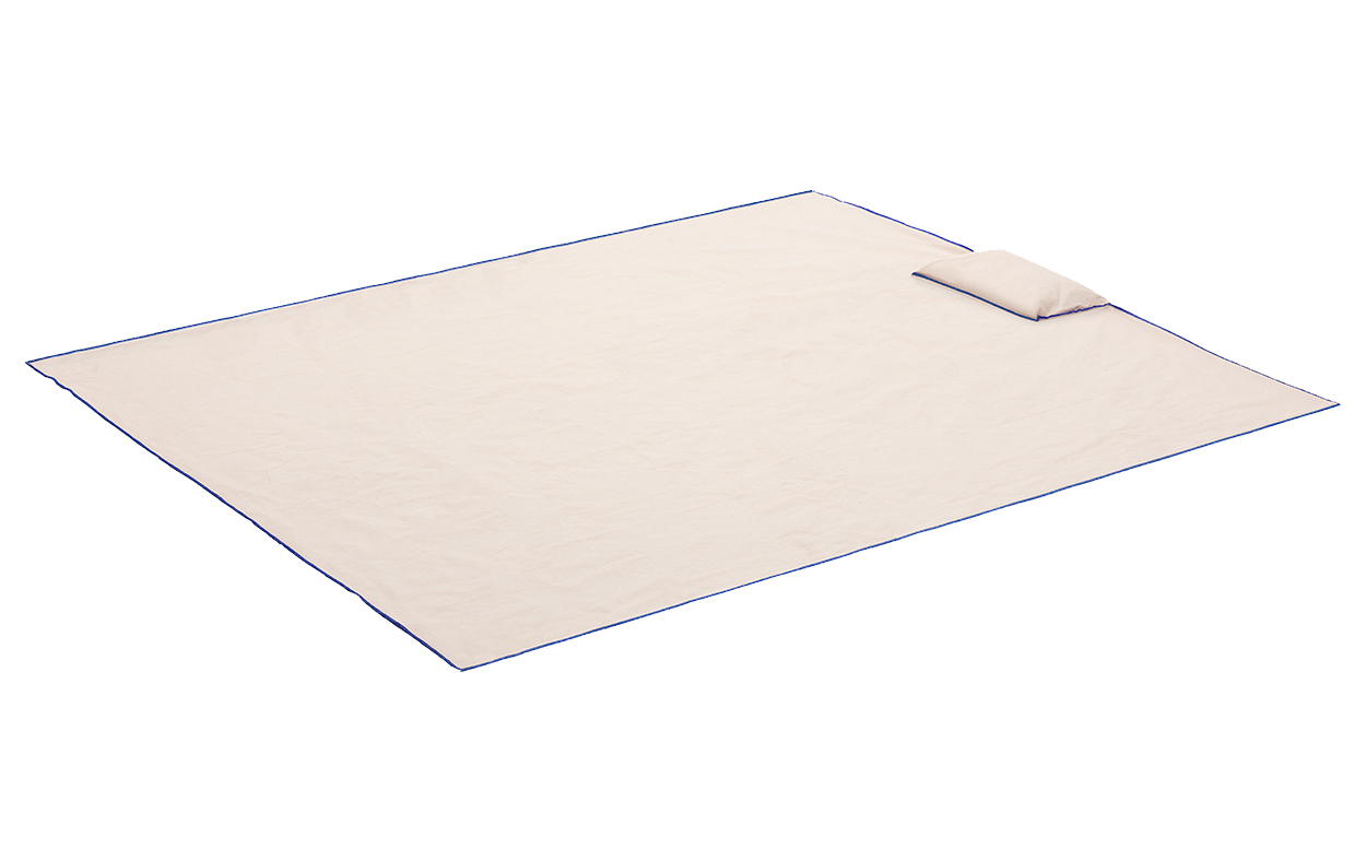 Lona de lienzo 100% algodón color crudo con bordes realizados en overlock de color negro. Contiene su propia funda cosida tipo sobre que sirve tanto de presentación como de almohada al rellenarla. Medidas: Lona 1,50 x 1,80 cm | Funda: 43 x 28 cm*Las medidas pueden tener una leve variación según partida.