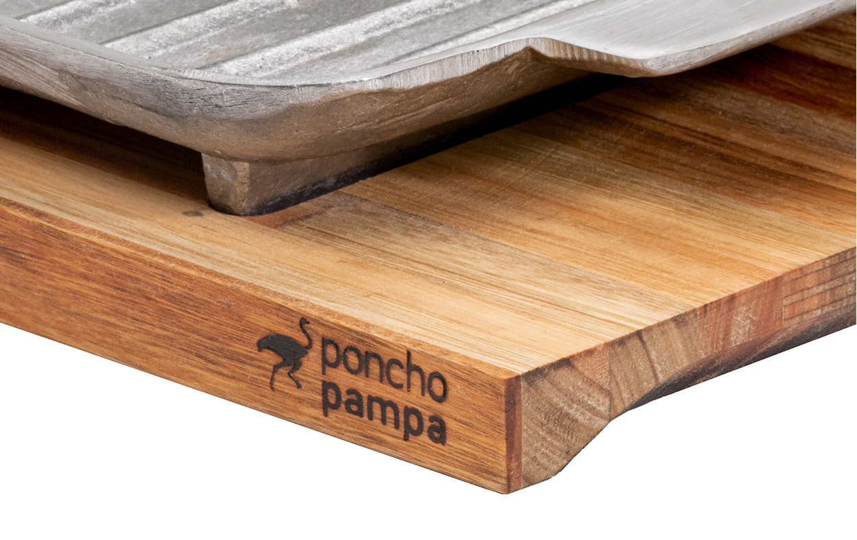 Bifera de aluminio 34x20x3,5 cm, con base de madera 40x22x2 cm, elaborada en madera de eucalipto reforestado que se caracteriza por su gran durabilidad y baja porosidad. Ideal para poder servir en la mesa lo que gustes y mantenerlo caliente. Se entregan curados con aceite mineral. Es una tabla fabricada en listón corrido, pegada y prensada, esto evita que la tabla se arquee.