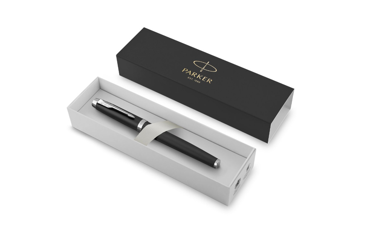 Rollerball de punta finaRollerball con acabado lacado en negro mate complementado con detalles cromados.Tinta negra.