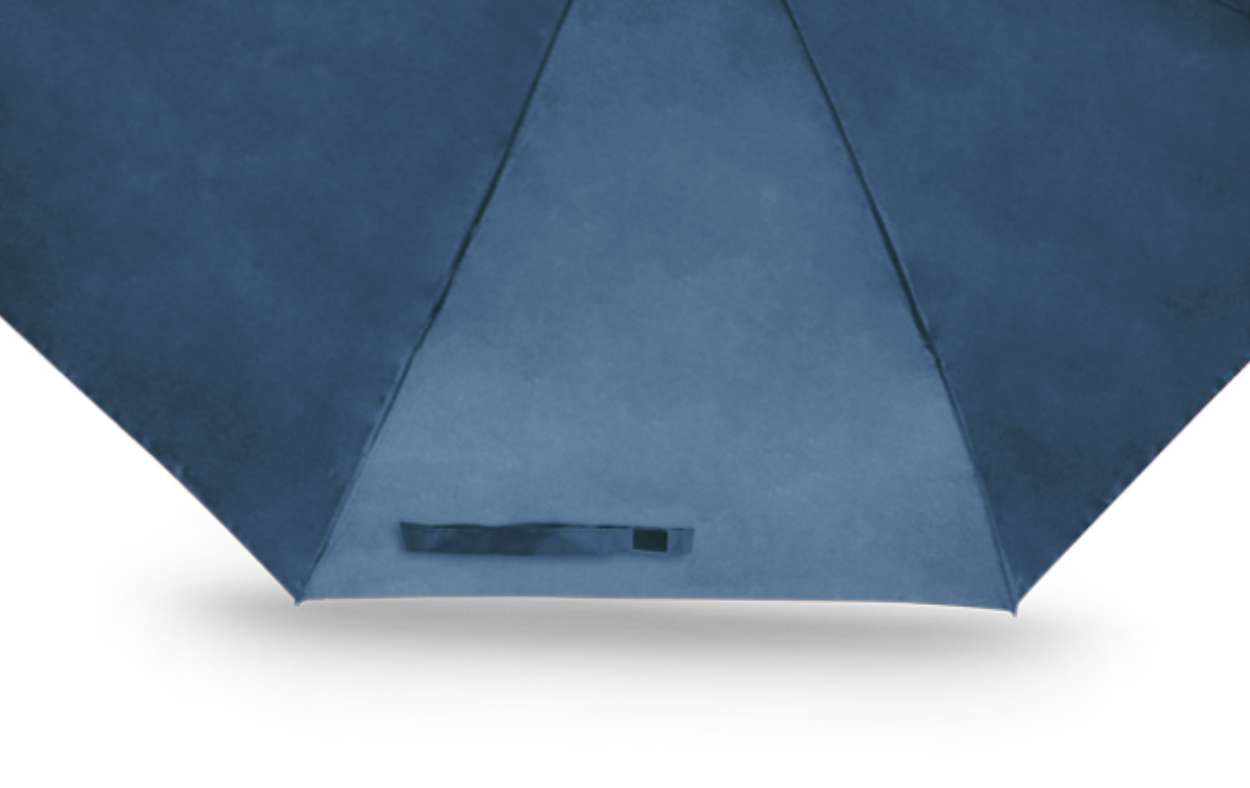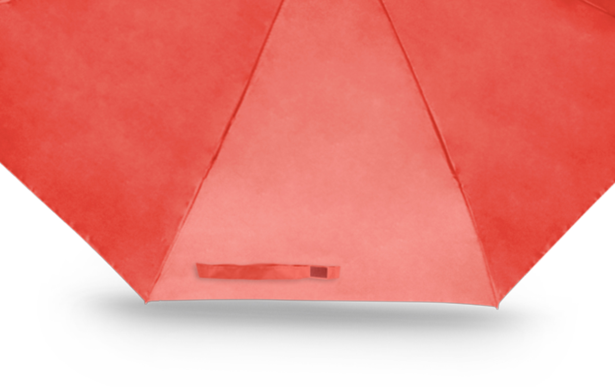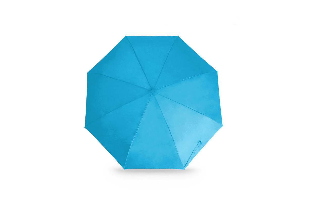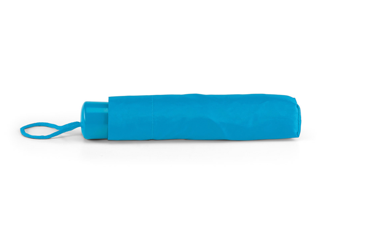 Diseño y tamaño ideal para transportar, posee correa para colgar, mango de plastico de color. Incluye funda mismo color. De 8 gajos de estructura en 3 partes metálica, botón de bloqueo, apertura manual. Poliéster 190T