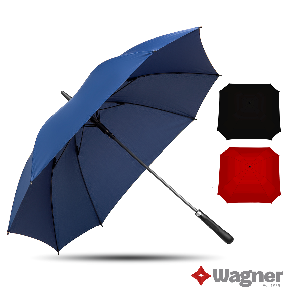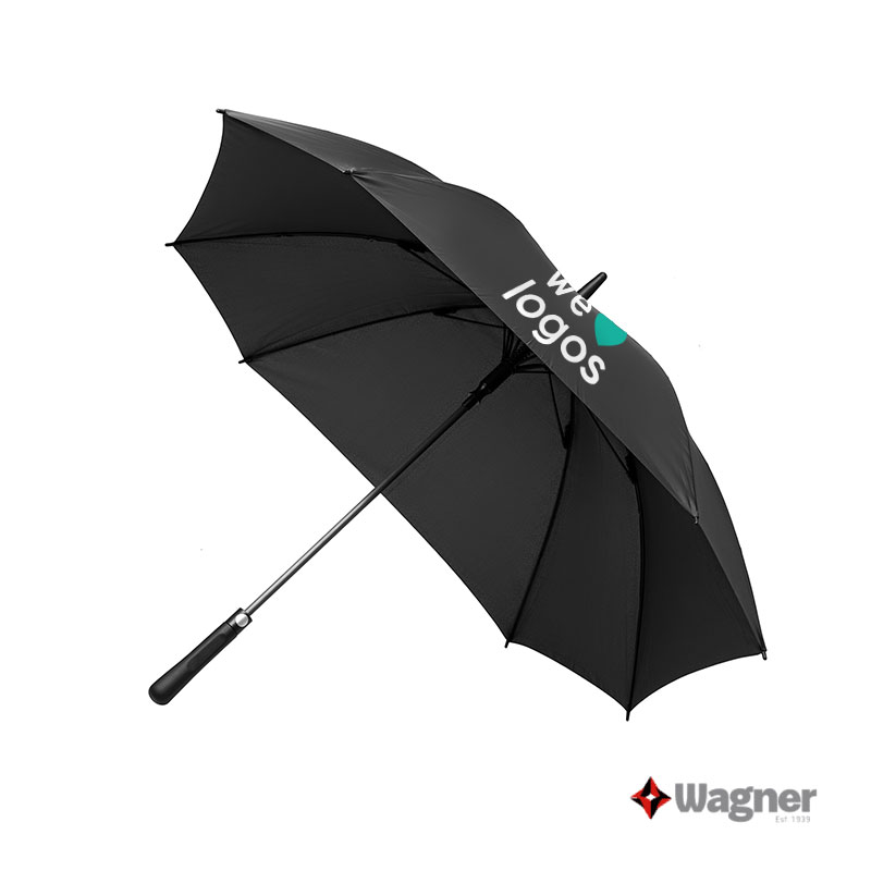 Realizado en Polyester 190T y Pongee, cuenta con sistema Wind Proof dual flex y costillas/ribs de nylon, otorgándole resistencia y flexibilidad. Posee mango plástico con rubber coating. Medidas: Largo 95 cm x diámetro 120 cm. Wagner