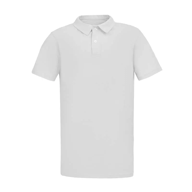 Chomba de manga corta en corte slim fit, con botones transparentes y terminación de mangas en dobladillo con collareta. Esta prenda está confeccionada 100% en algodón 24/1 peinado, un recurso ecológico renovable y sostenible.