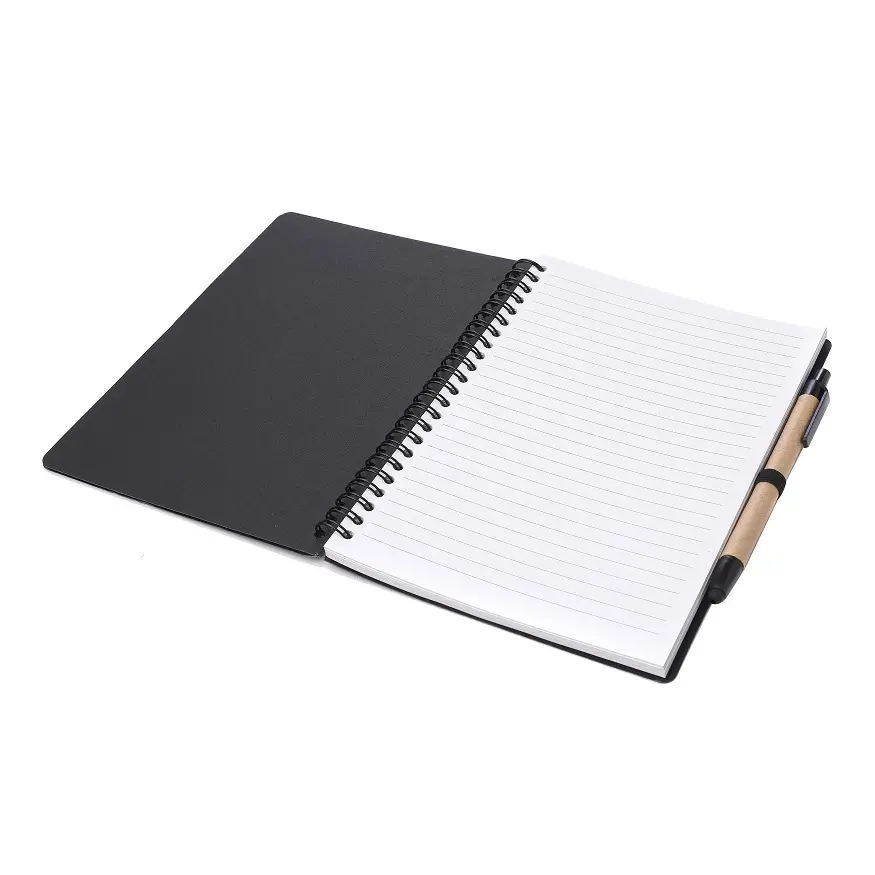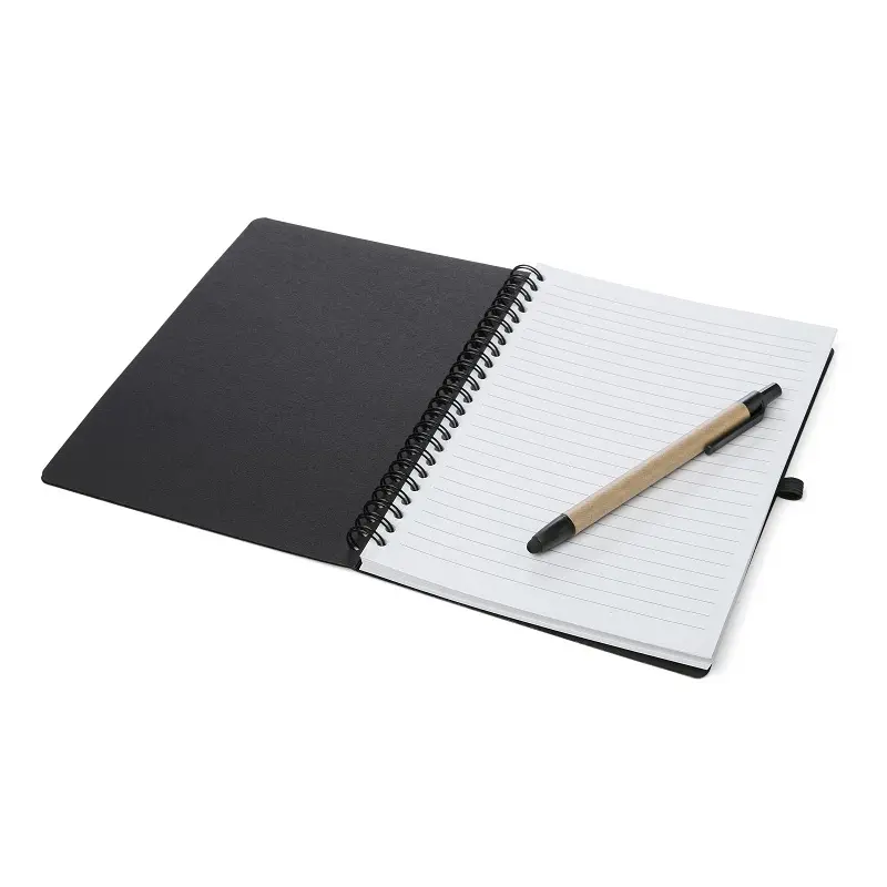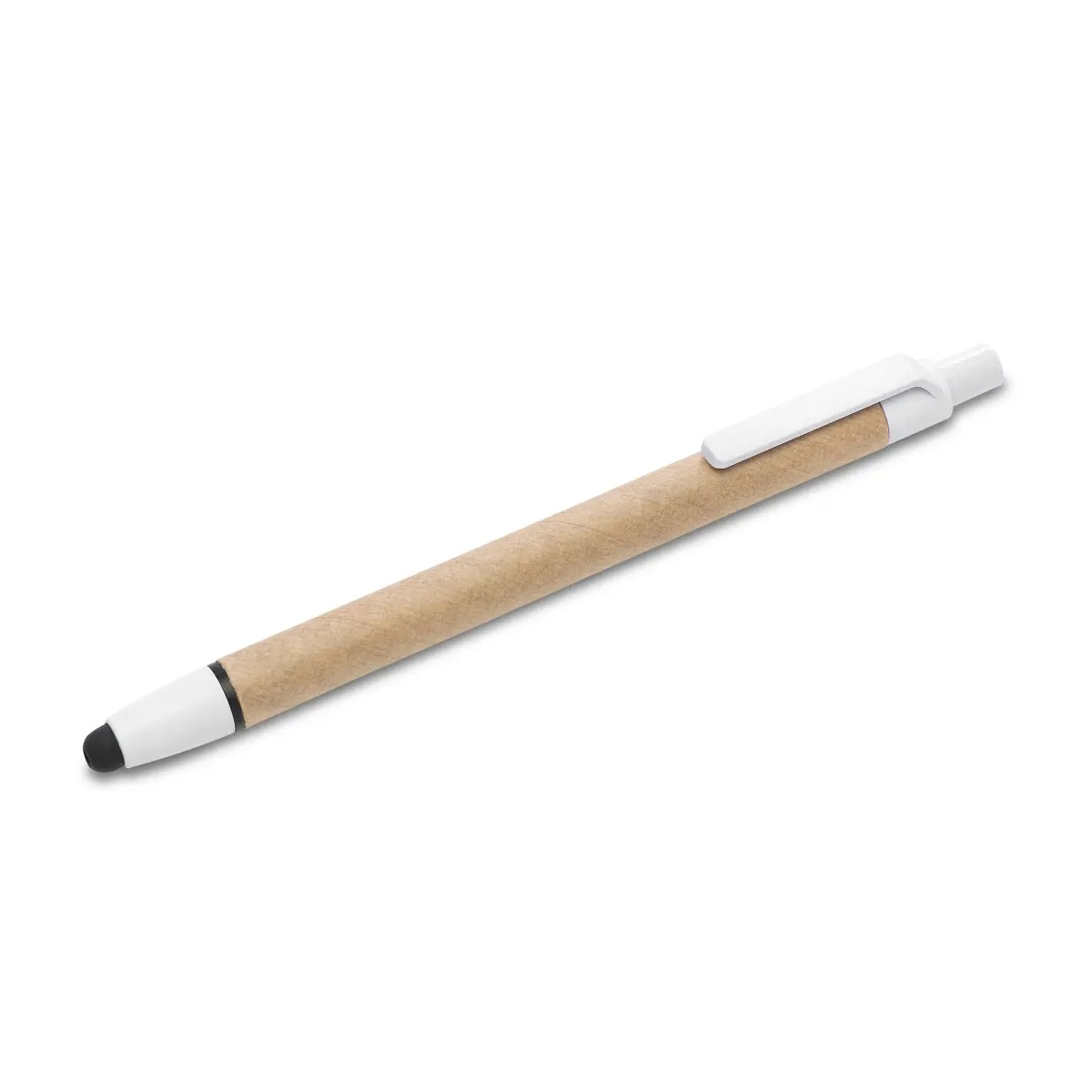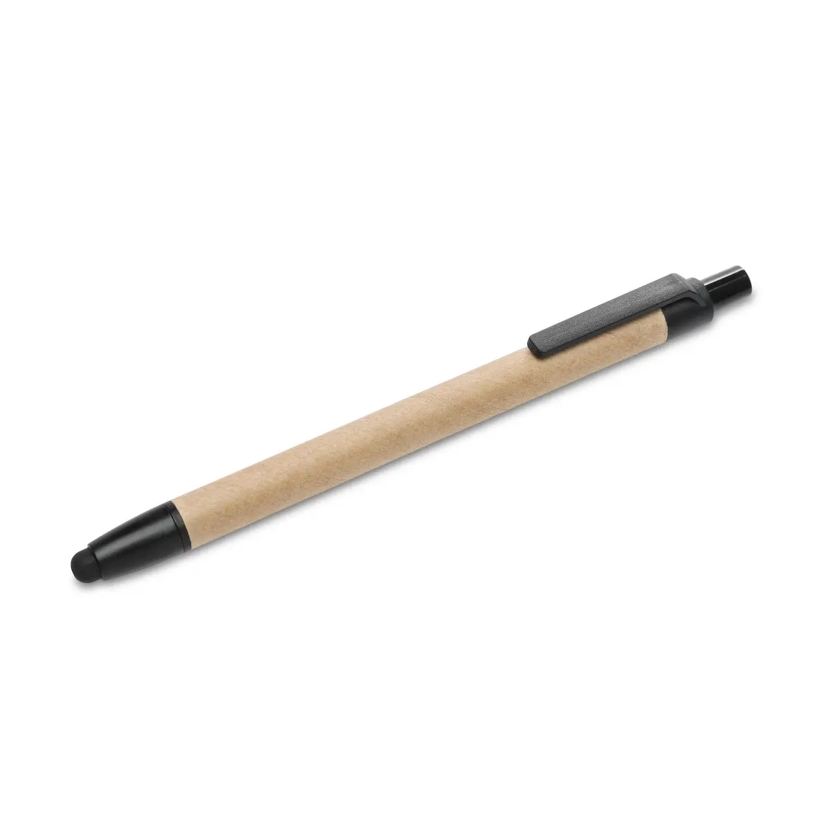 Bolígrafo Ecológico retráctil con puntera touch, incluido en elástico portabolígrafo.