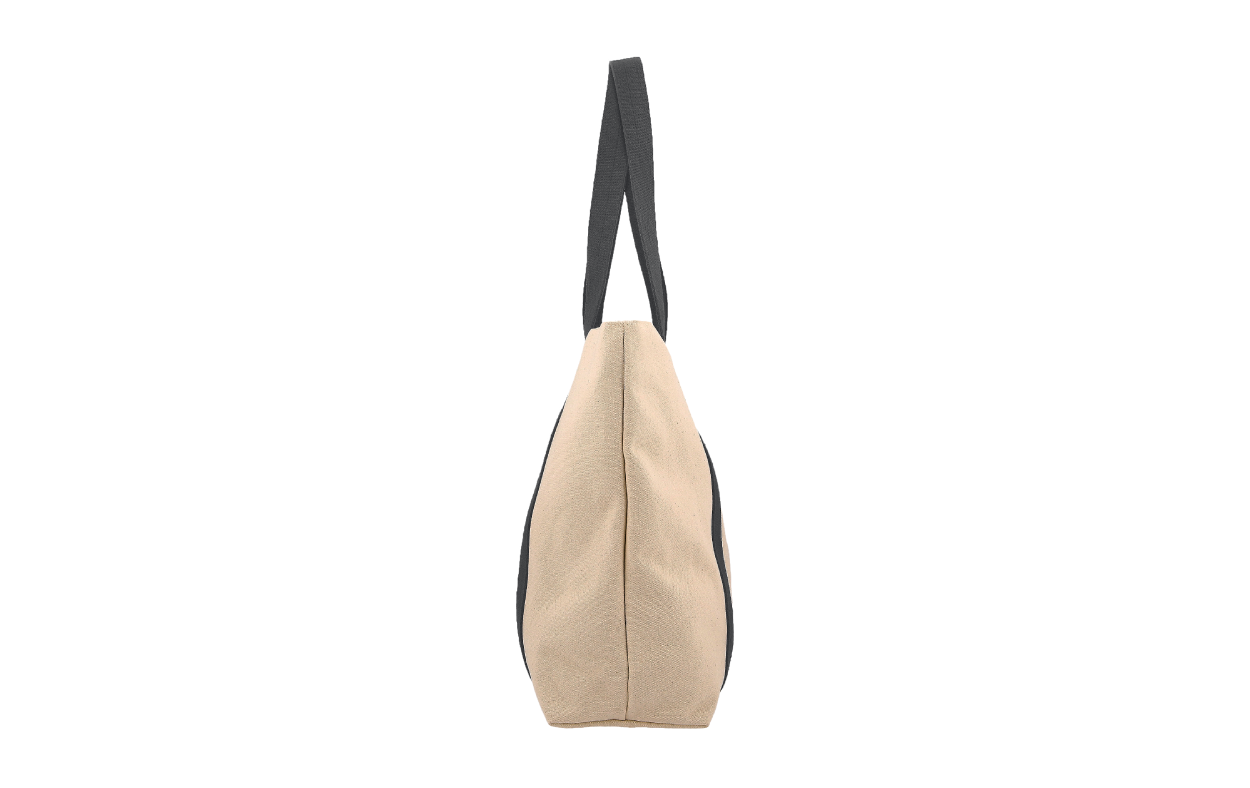 Bolso de lona de 100% algodón con forro de Lienzo Crudo. Cierre con broche Imán. Manijas de cinta de diferentes colores tejida 100% algodón de 30 mm. Medidas : 46 x 38 x 13 cm