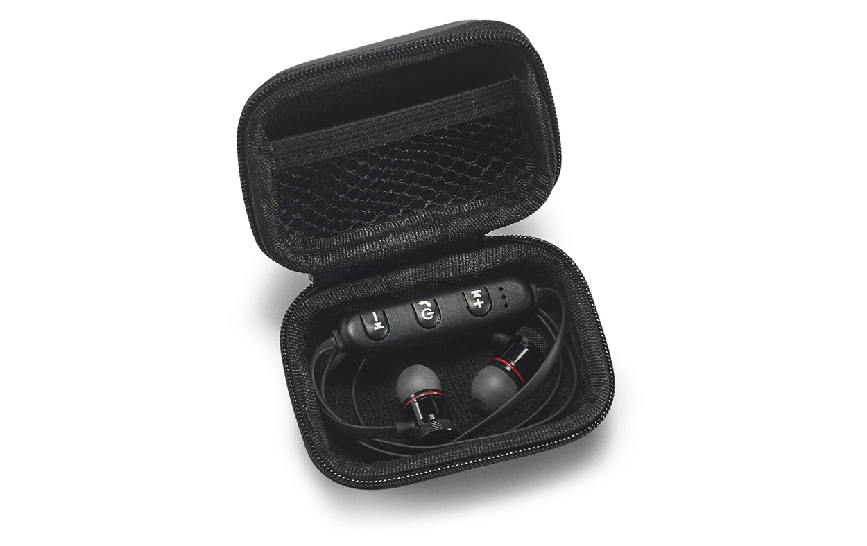 Auriculares inalámbricos con conexión Bluetooth 4.1. Gracias a sus botones multifunción te permite responder llamadas, controlar el volumen y conectarse a la lista de reproducción del dispositivo móvil. La batería tiene una capacidad de 50 mAh. Incluye cable USB/micro USB para su carga. Los auriculares se suministran en estuche de goma EVA