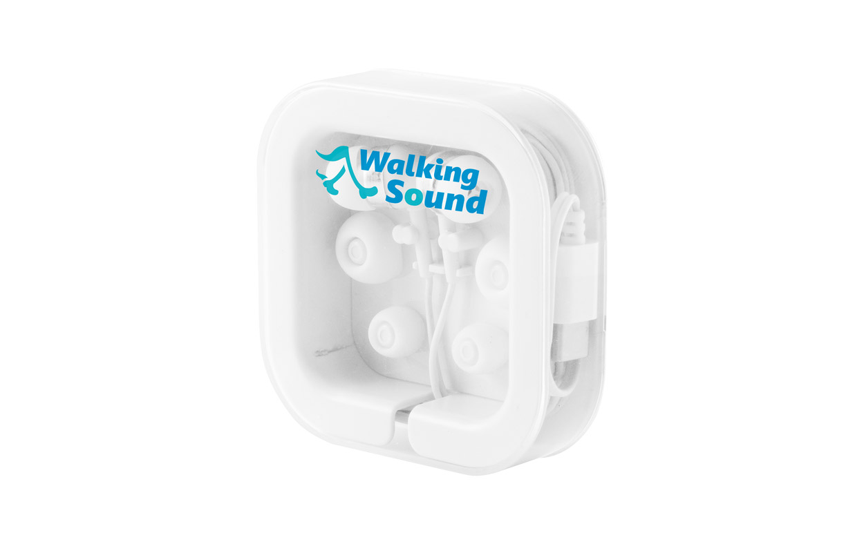 Con estuche de PS y ABS con tapa transparente. Medidas: 7 x 7 x 1,8 cm
