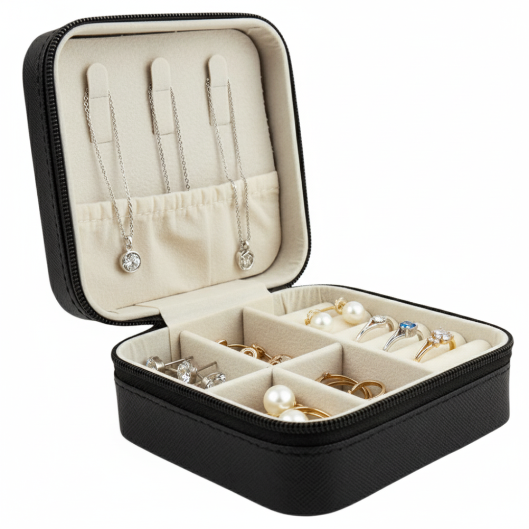 Guardá todos tus anillos, aritos y collares en un solo lugar. Ordenados y fáciles de encontrar. Ideal para llevar a todas partes en la cartera o valija para tus viajes.Ideal para llevar a todas partes en la cartera o valija para tus viajes.