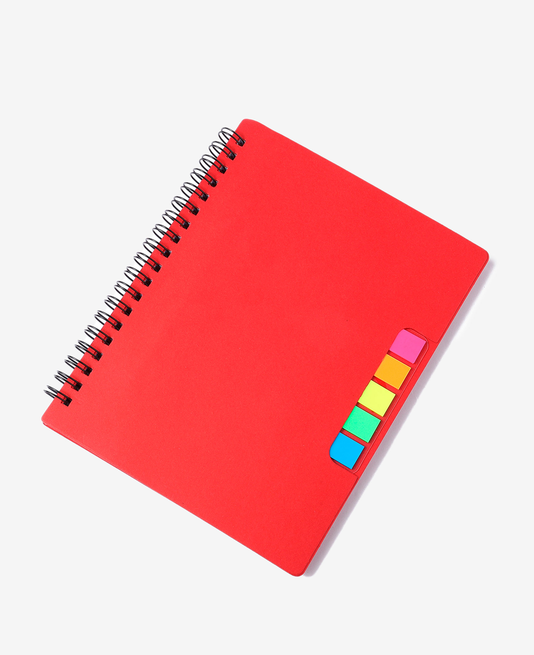 incluye boligrafo ecológico retractil, y 5 post it de colores.