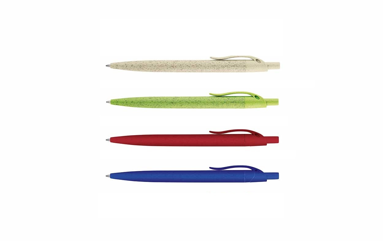 Bolígrafo ecológico fabricado en fibra de paja de trigo y ABS. Detalles granulados en el color . Tinta negra, punta redonda, grosor 1.0MM